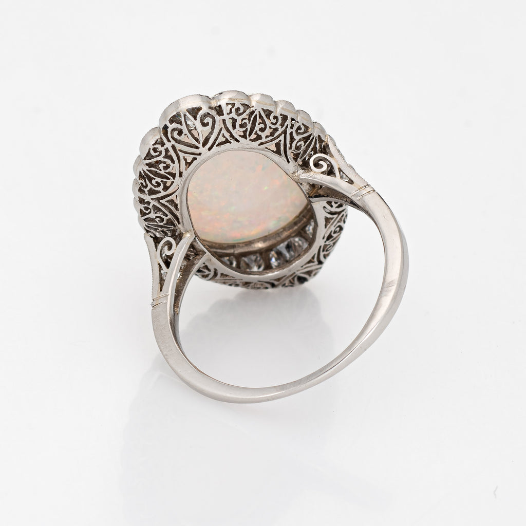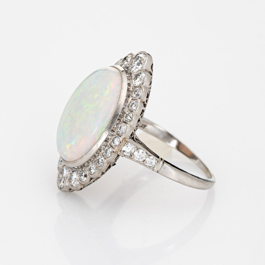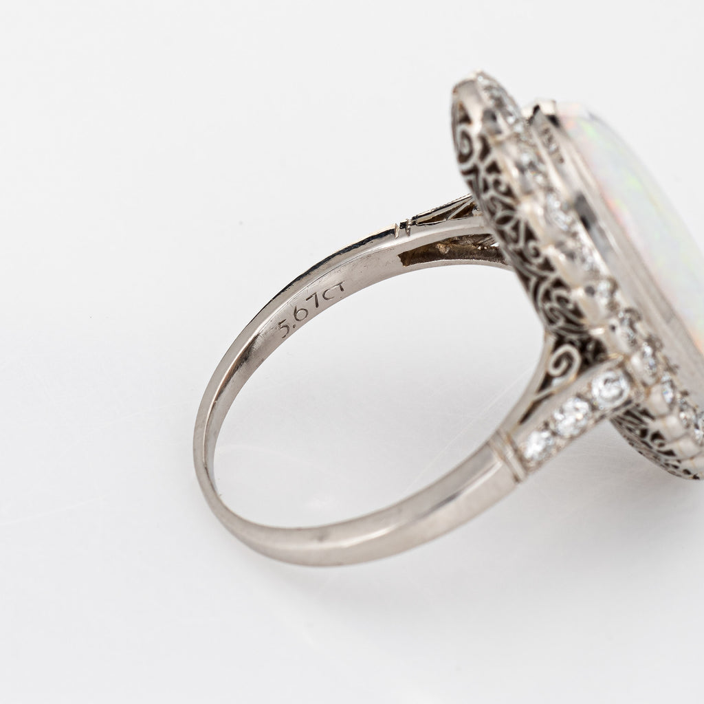 Natural Opal Diamond Ring Platinum Vintage Large Oval Cocktail Estate Jewelry 7