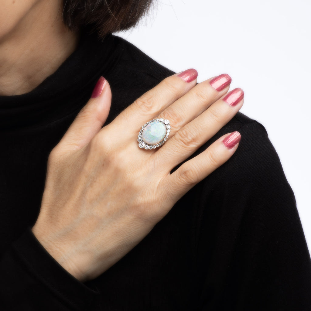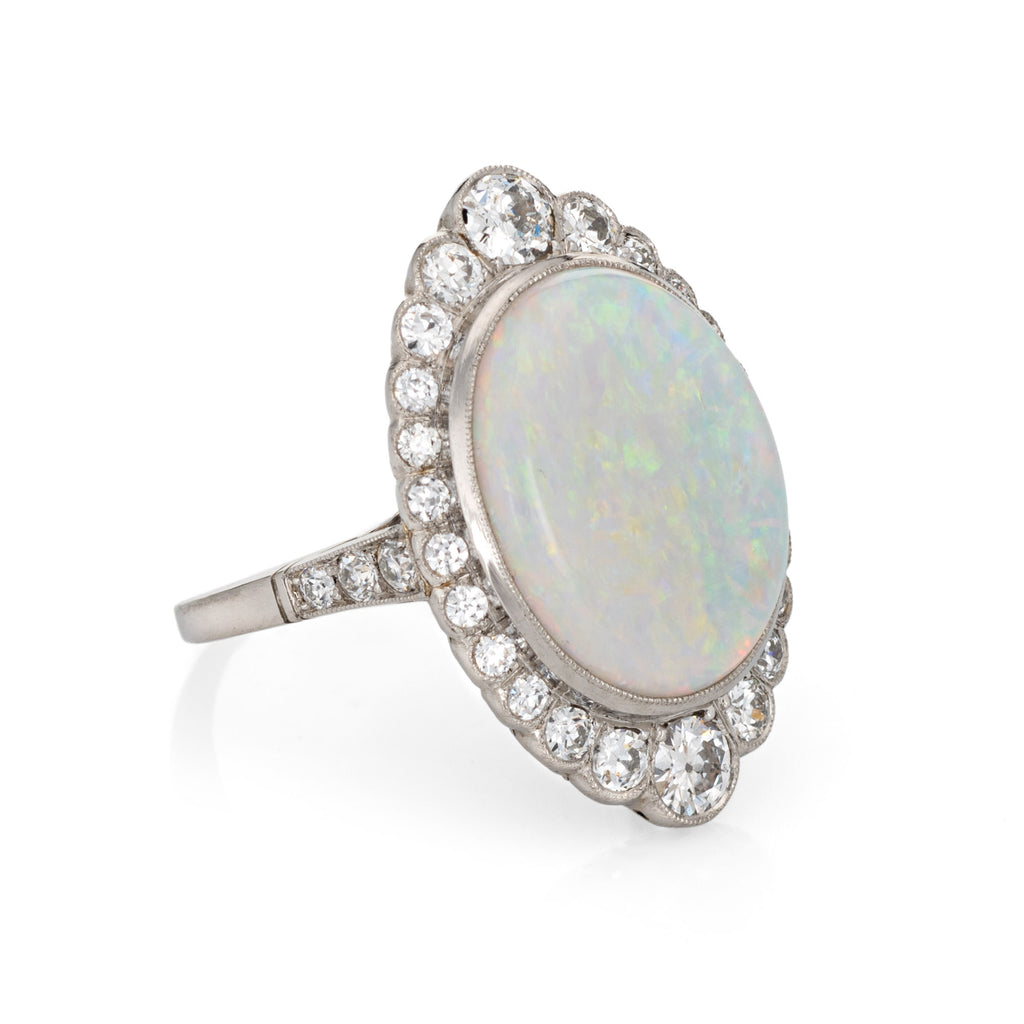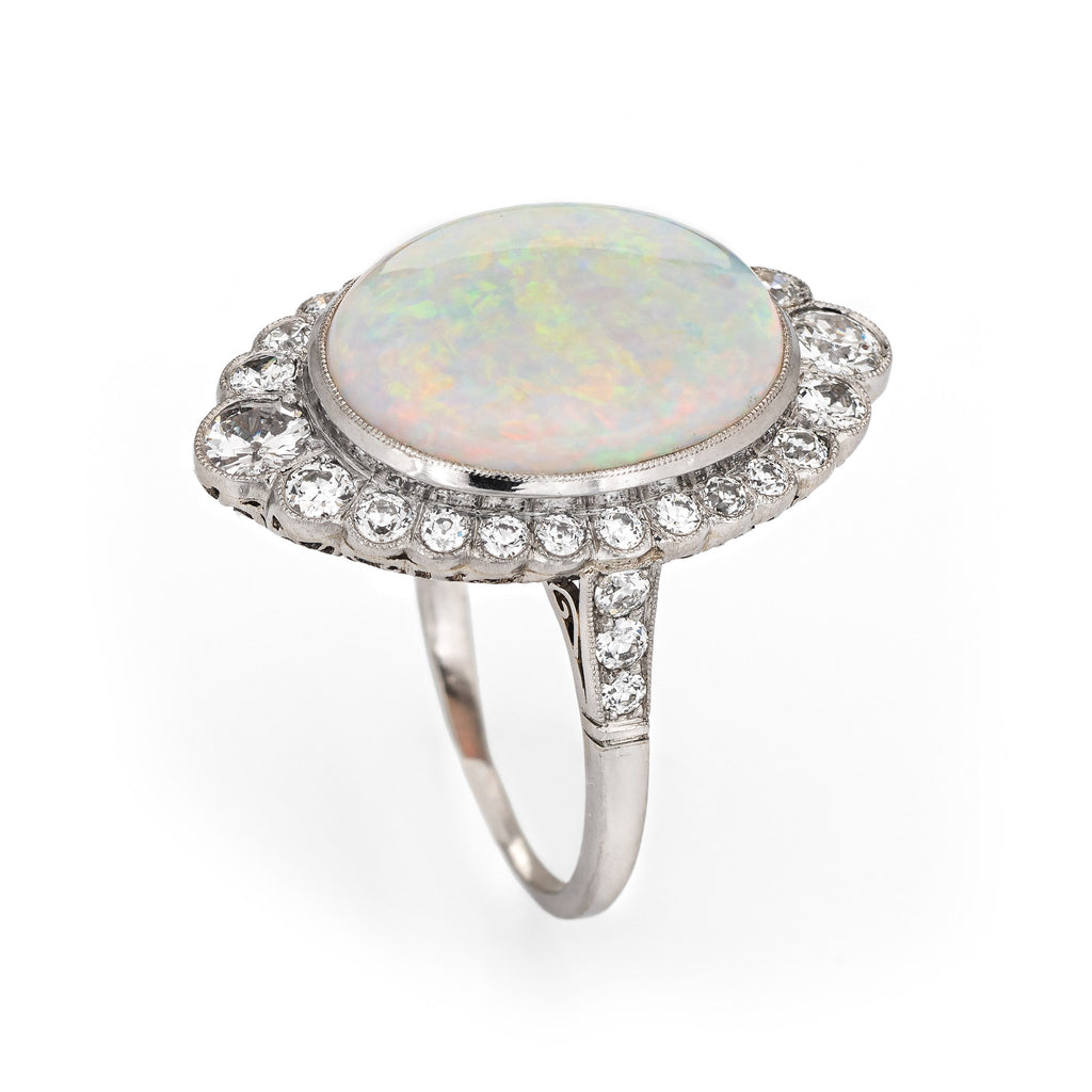 Natural Opal Diamond Ring Platinum Vintage Large Oval Cocktail Estate Jewelry 7