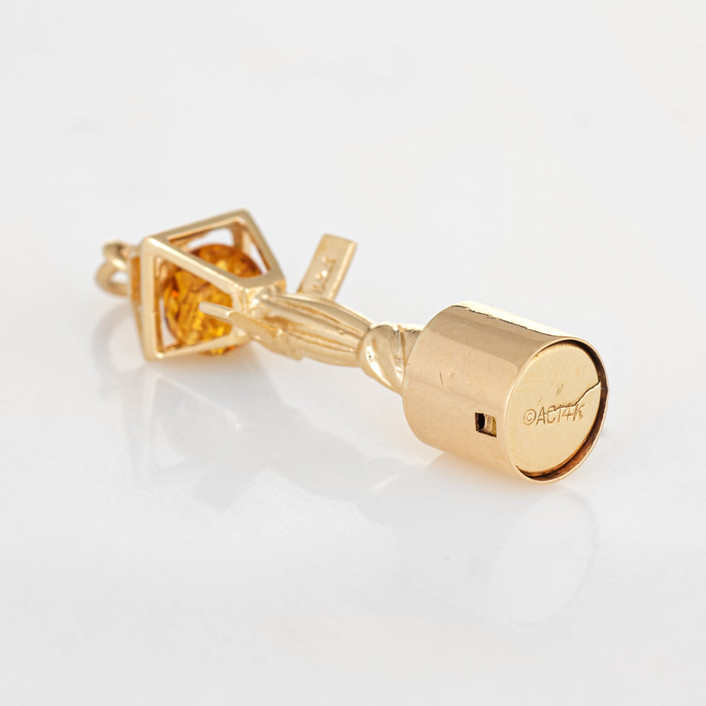 Metal & Hallmark: 14k yellow gold. The charm is hallmarked "14k"
