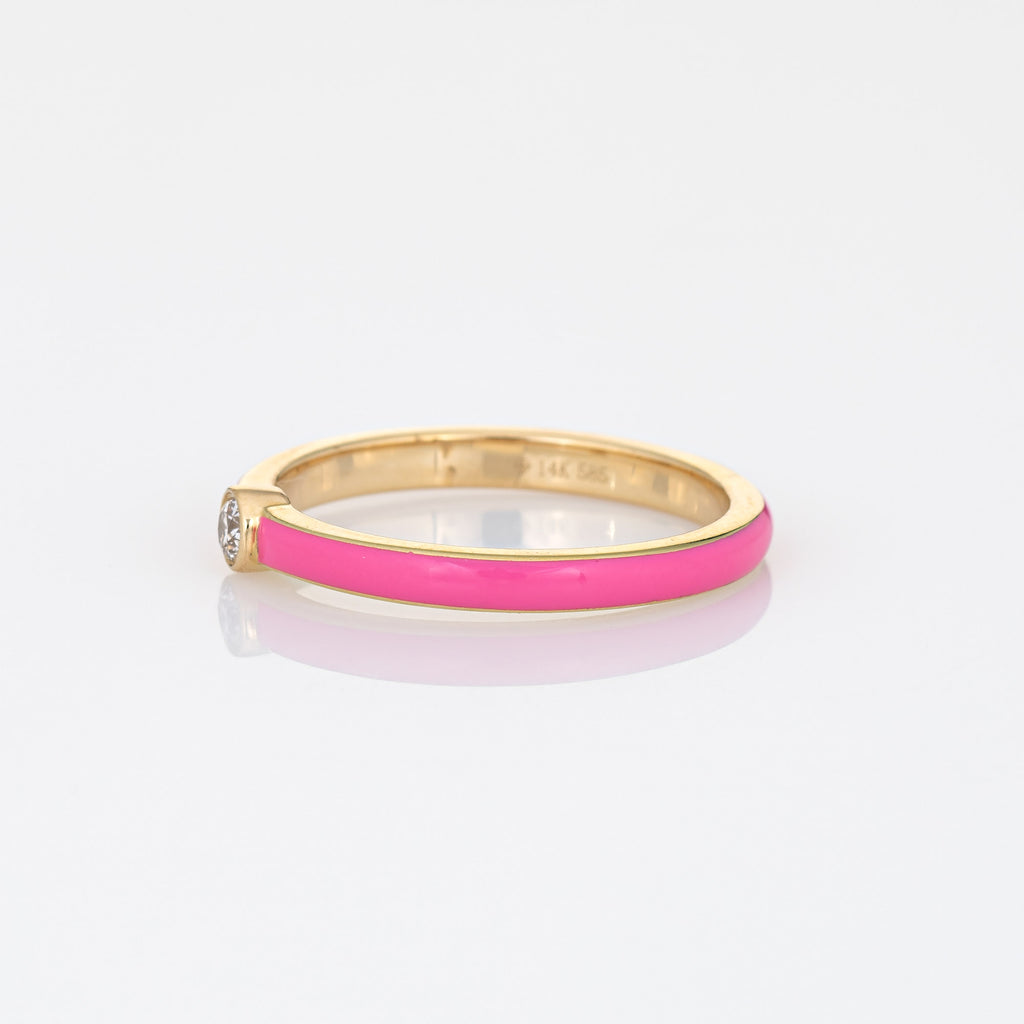Pink Enamel Diamond Ring Sz 6.5 14k Yellow Gold Stacking Band Fine Jewelry
