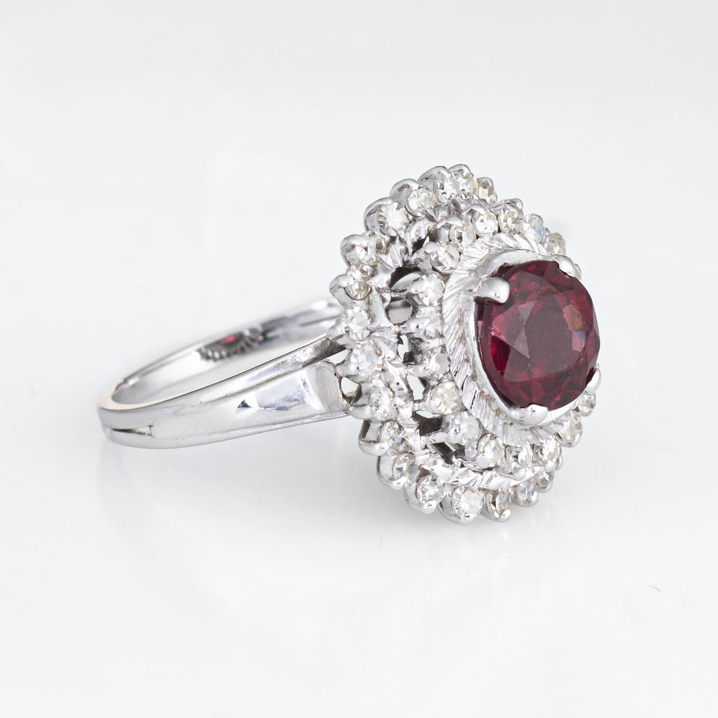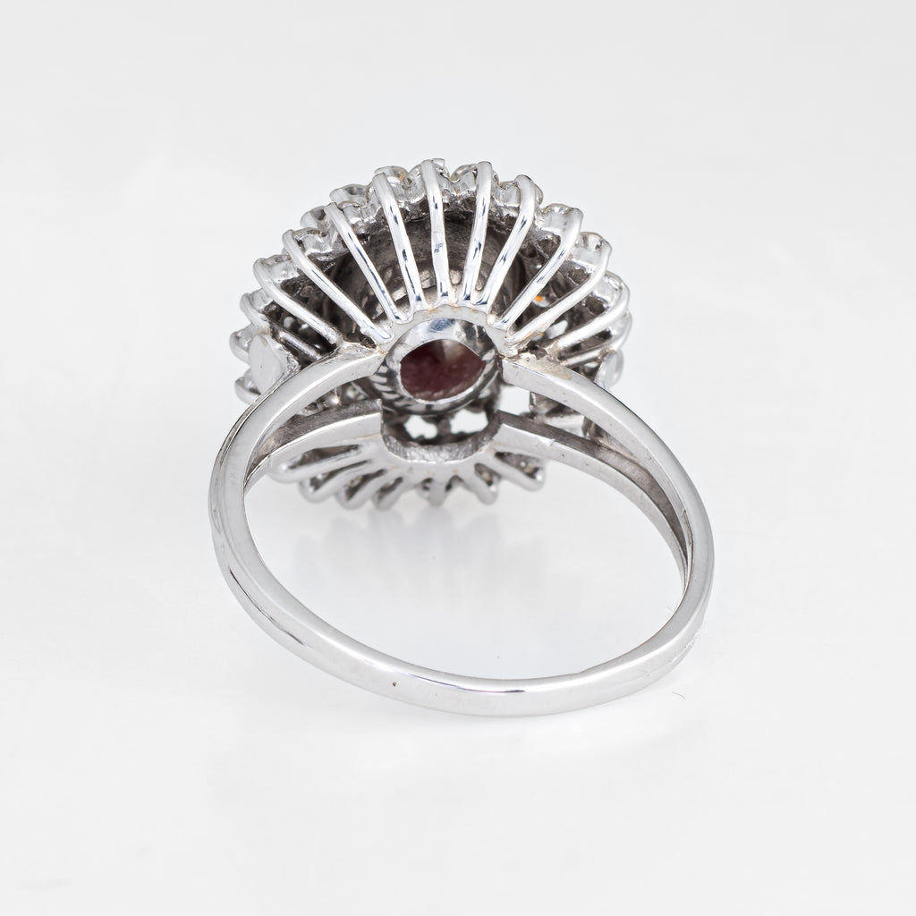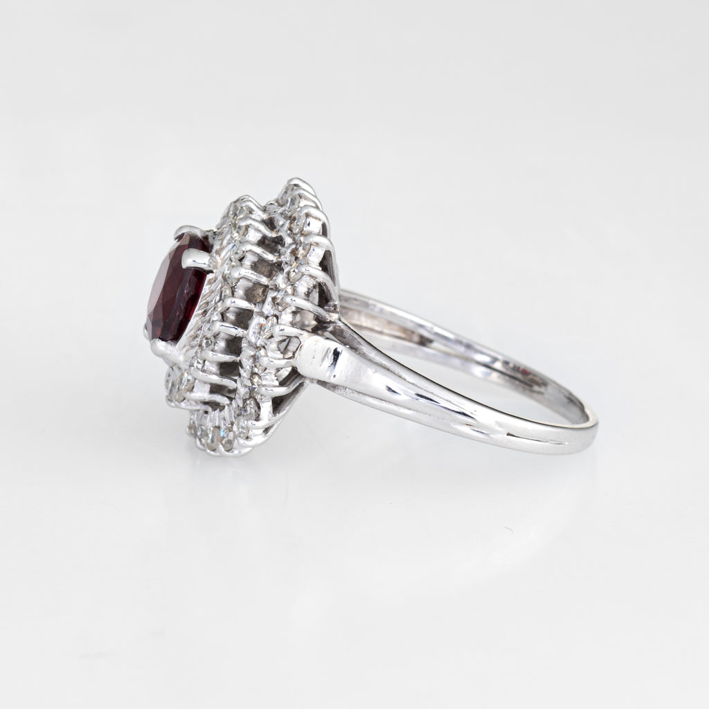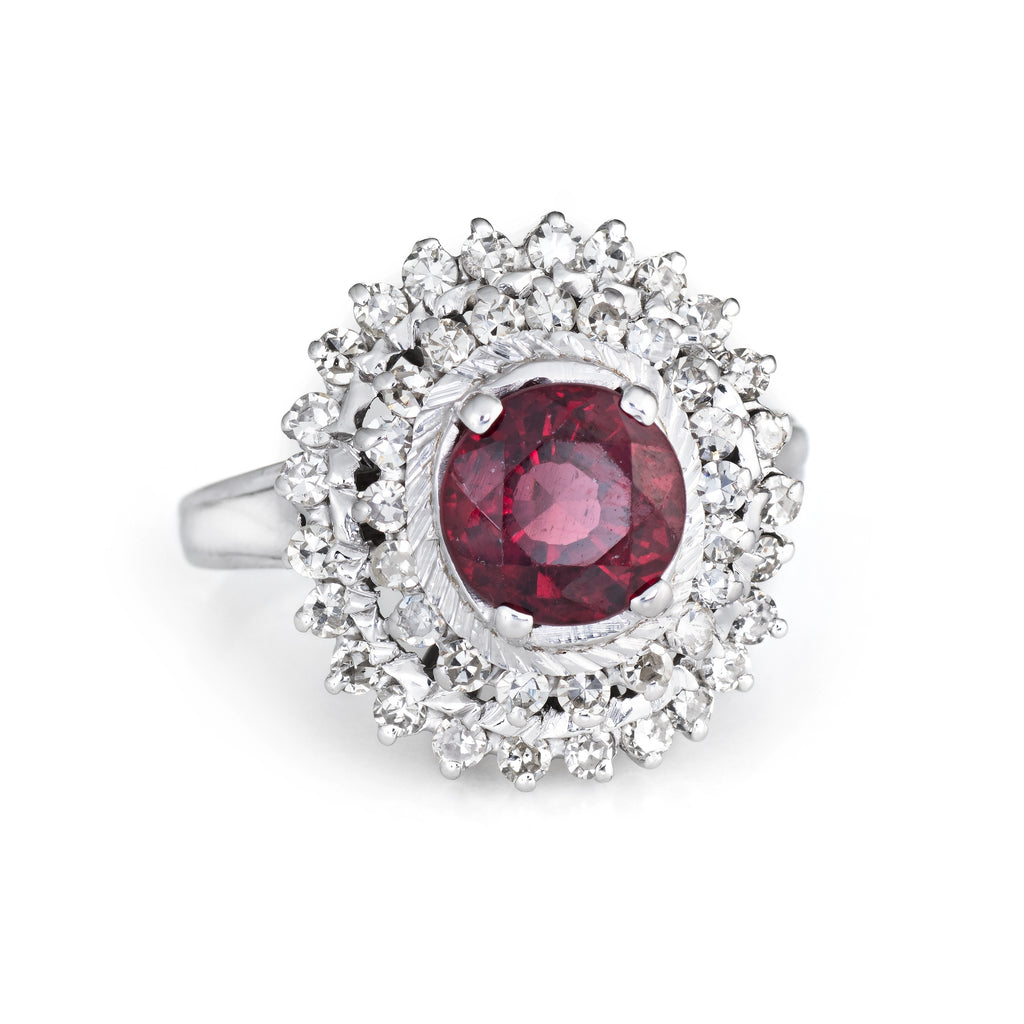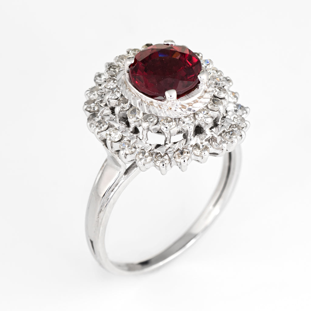 Stylish vintage pink tourmaline & diamond ring (circa 1970s to 1980s), crafted in 18 karat white gold.