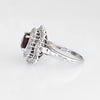 Stones: Round cut faceted pink tourmaline measures 8mm (estimated at 2 carats), accented with 47 single cut diamonds. The total diamond weight is estimated at 0.74 carats (estimated at H-I color and VS2-SI1 clarity). The tourmaline is in excellent condition and free of cracks or chips.