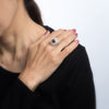 Size & Measurements: The ring is a size 9 (sizable). The mount measures 19mm in length (0.74 inches) and 18mm wide (0.70 inches), rising 10.8mm from the finger.