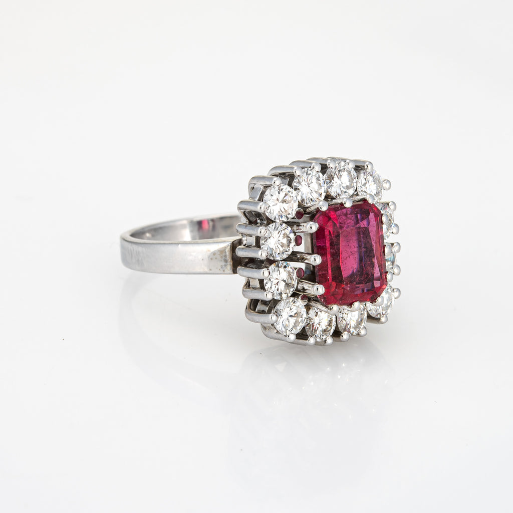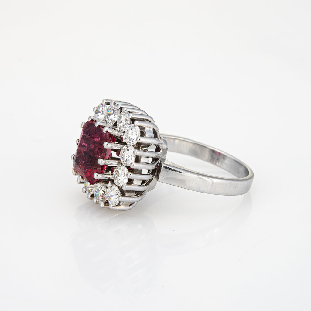 Pink Tourmaline Diamond Ring Vintage Square Cocktail Sz 8 Platinum Fine Jewelry