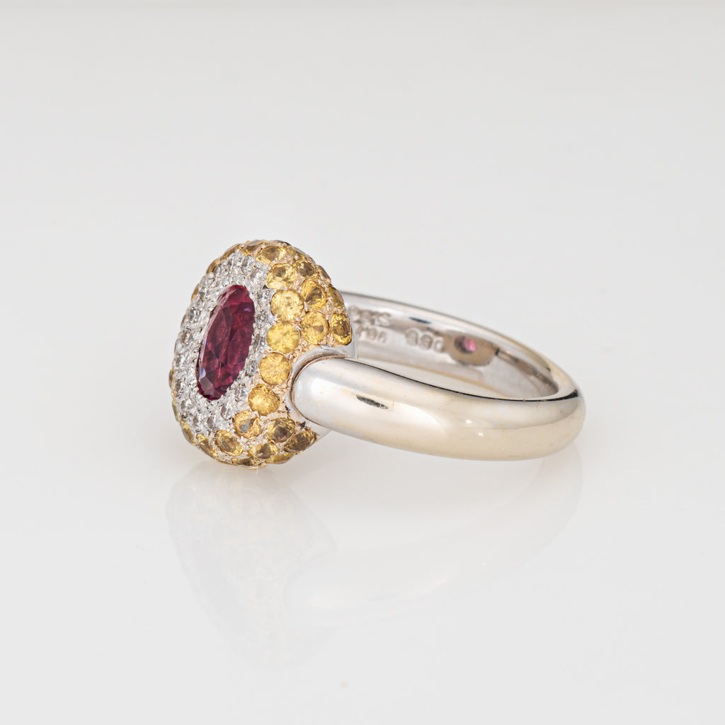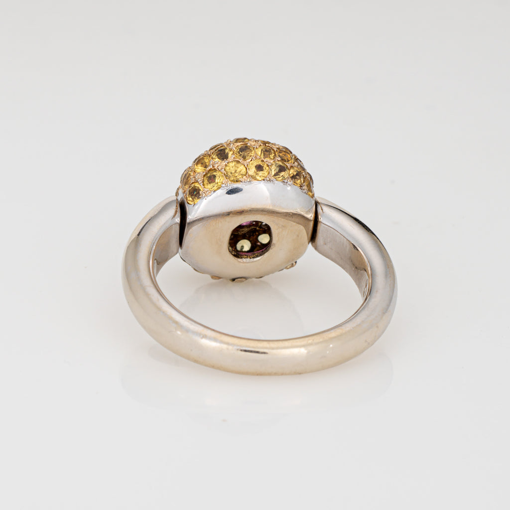 Stylish contemporary pink tourmaline, yellow sapphire & diamond 'flip' ring crafted in 18 karat white gold (circa 2000s).
