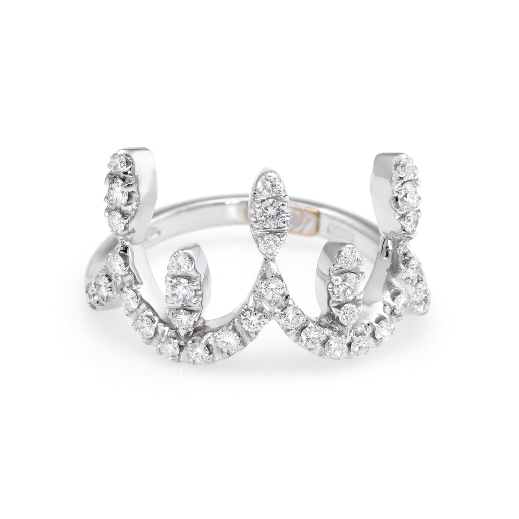 Recarlo Diamond Tiara Crown Ring Estate 18k White Gold Fine Jewelry Sz 6