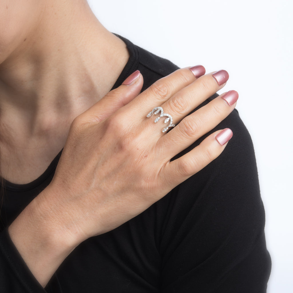 Metal & Hallmark: 18 karat white gold. The ring is hallmarked "750" for 18 karat gold and "Recarlo".