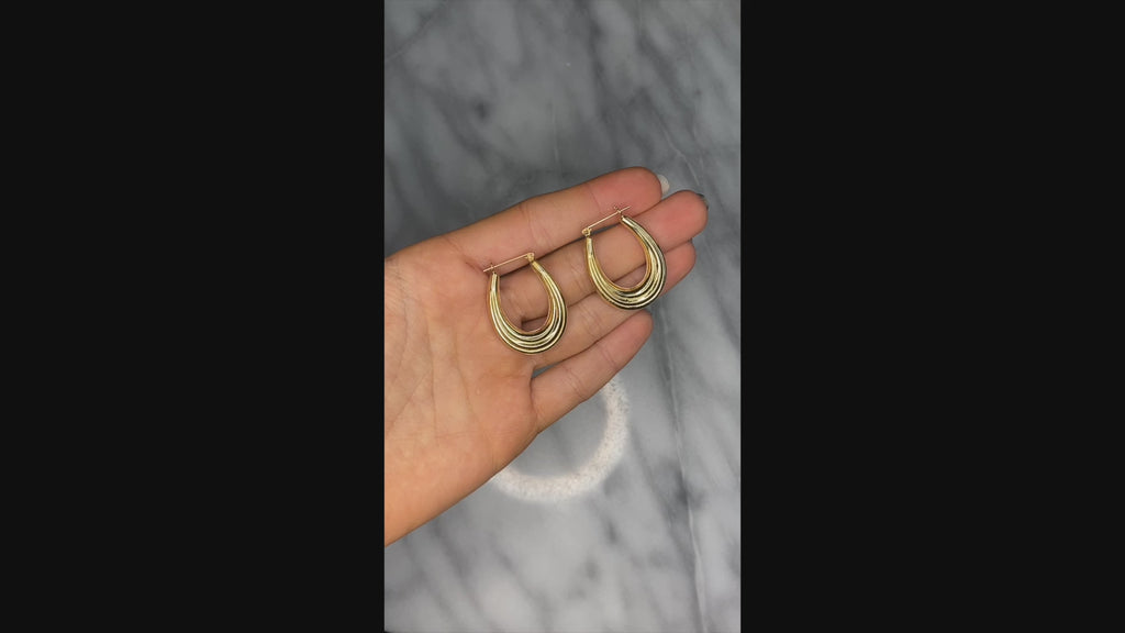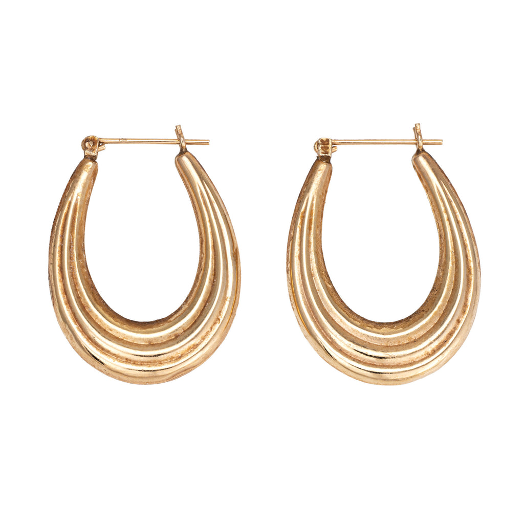 Ridged Oval Hoop Earrings Vintage 14k Yellow Gold 1.25" Drops Estate Jewelry