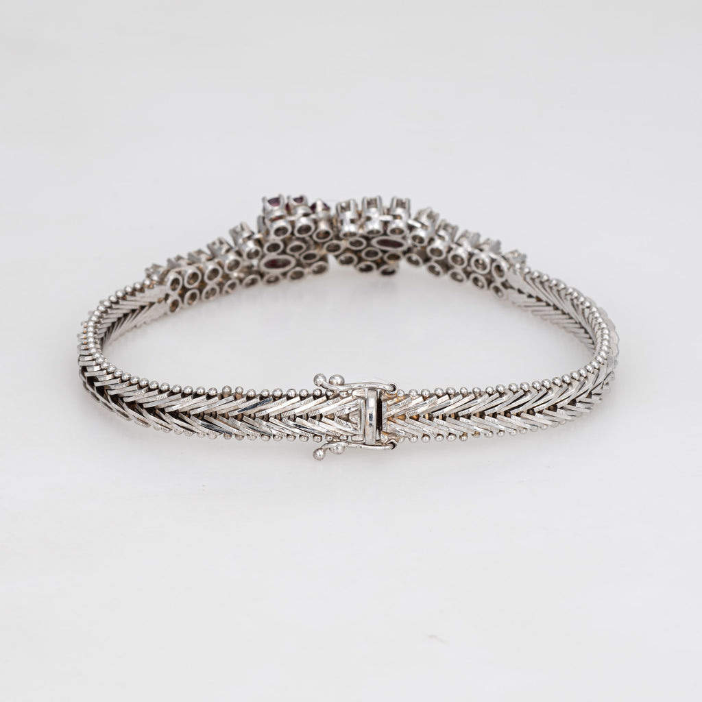 Ruby Diamond Bracelet Vintage 50s 18k White Gold Estate Fine Jewelry 6.5"