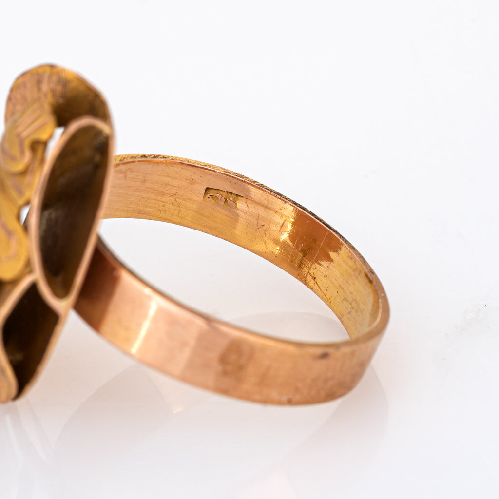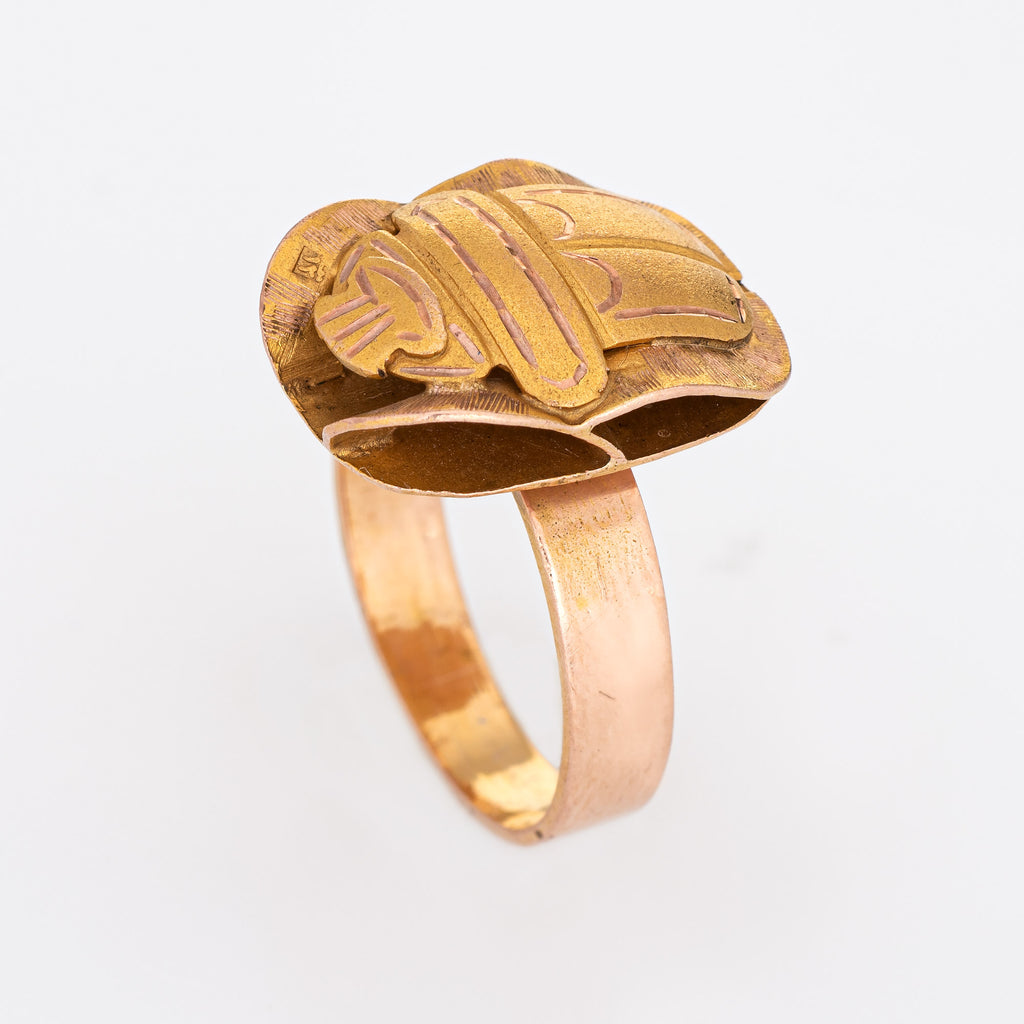 Scarab Beetle Ring Vintage 14k Yellow Gold Sz 6.5 Fine Egyptian Jewelry
