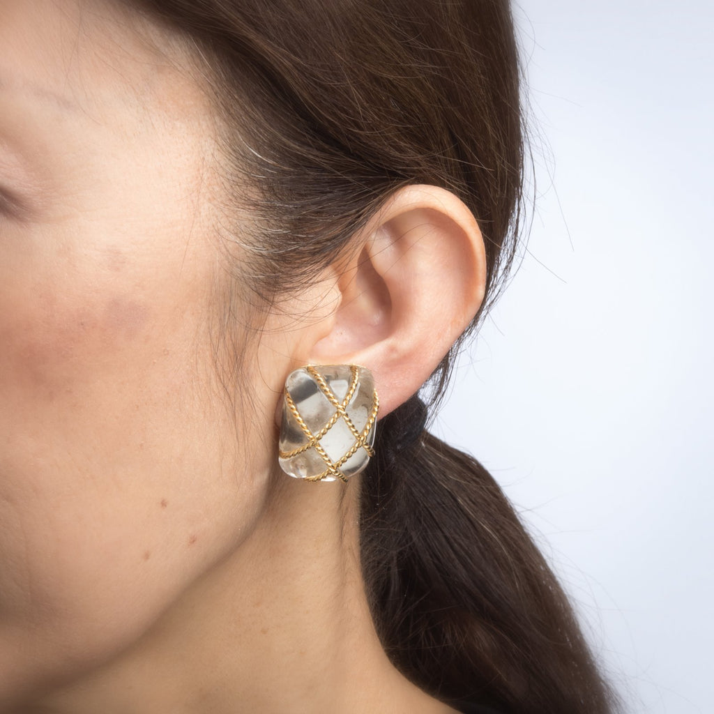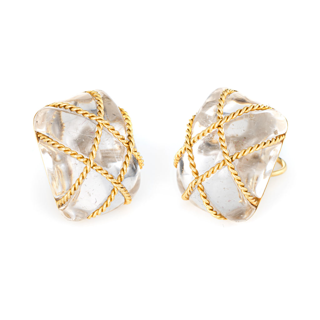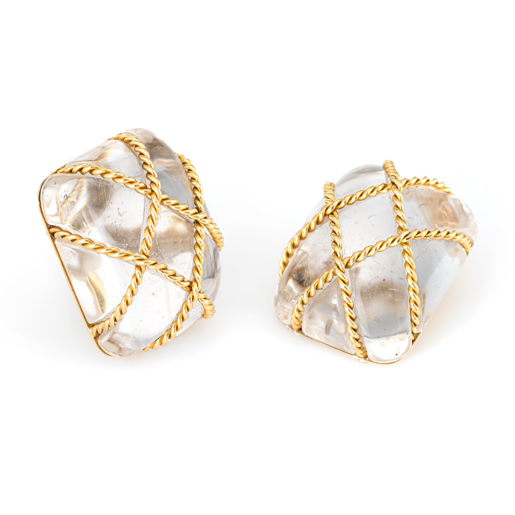 Elegant pair of vintage Seaman Schepps rock crystal earrings set with rock crystal crafted in 18k yellow gold.
