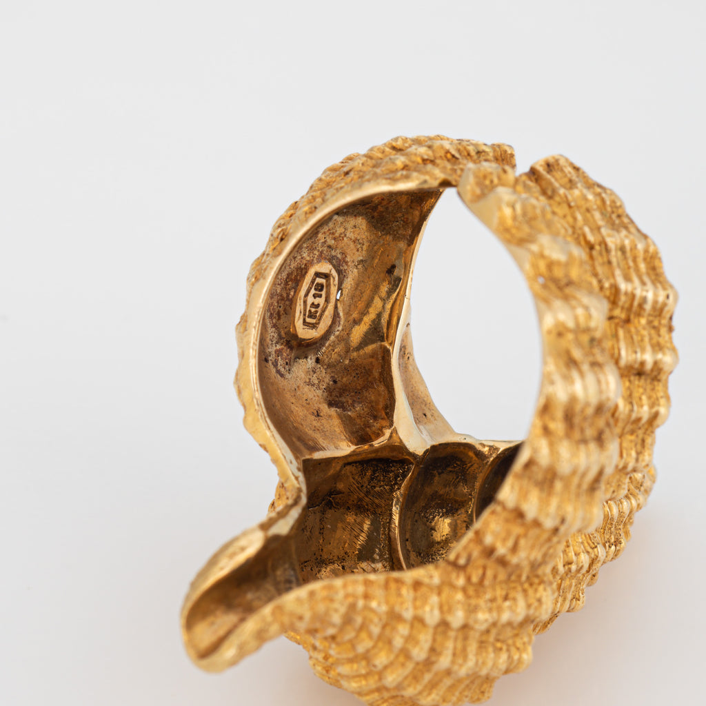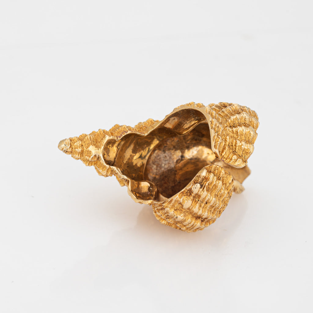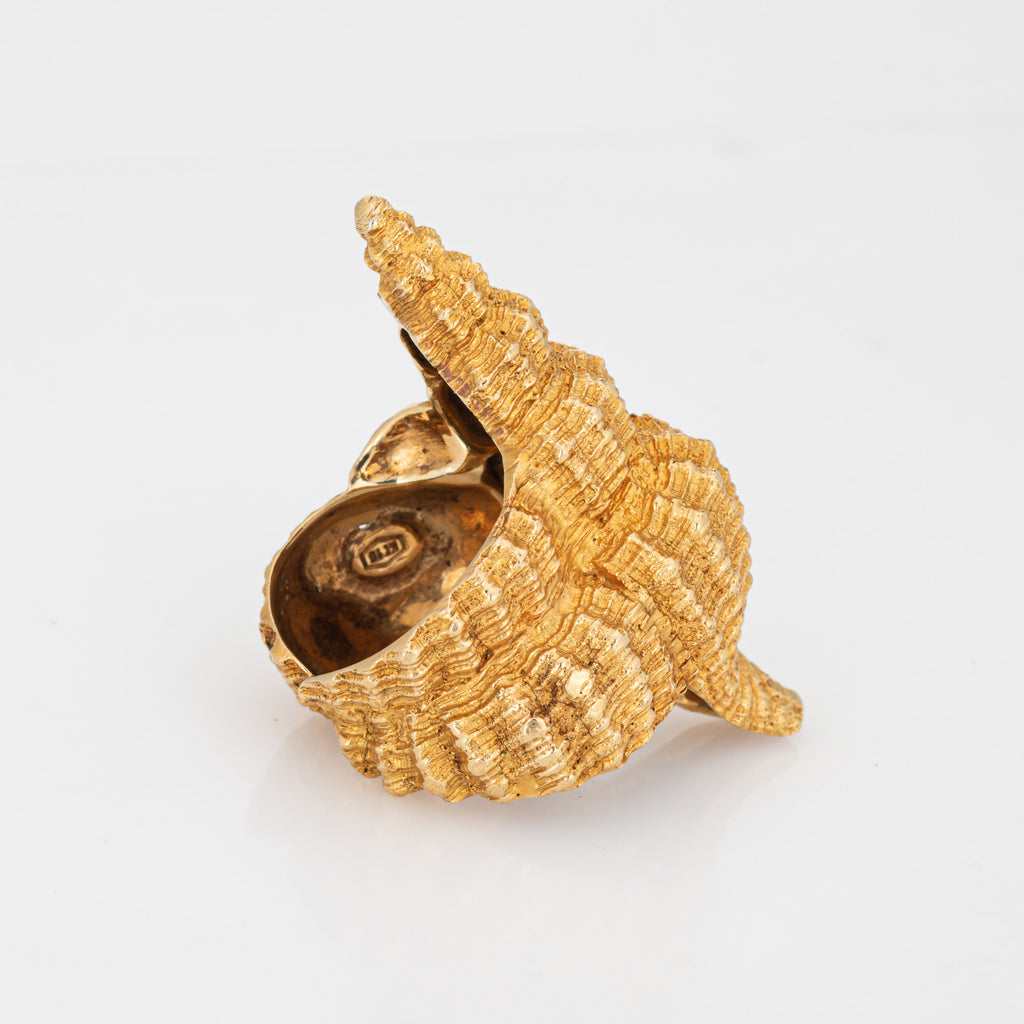 Stylish sea shell cocktail ring crafted in 18 karat yellow gold (circa 1970s to 1980s).