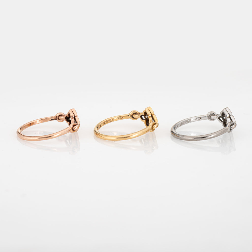Pre owned set of 3 Cartier Hindu diamond rings crafted in 18 karat white, rose and yellow gold.