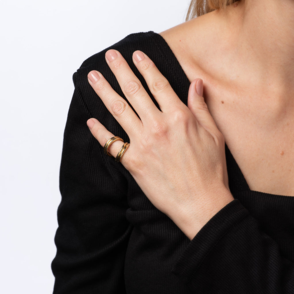 With a split design the striking ring is great worn alone as a statement piece or stacked for maximum effect. The low rise ring (4mm - 0.15 inches) sits comfortably on the finger.