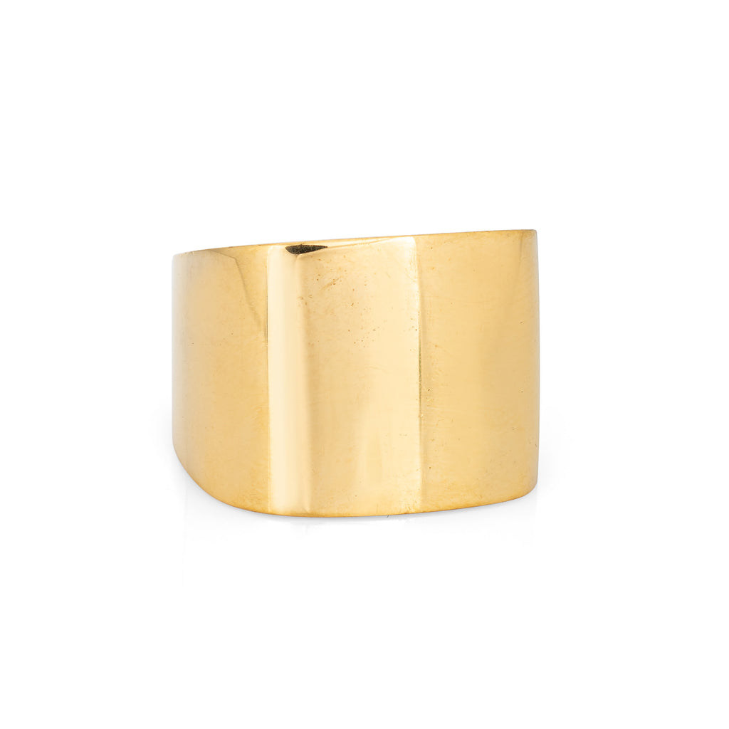 Stylish vintage 18k gold square signet cuff ring (circa 1980s).