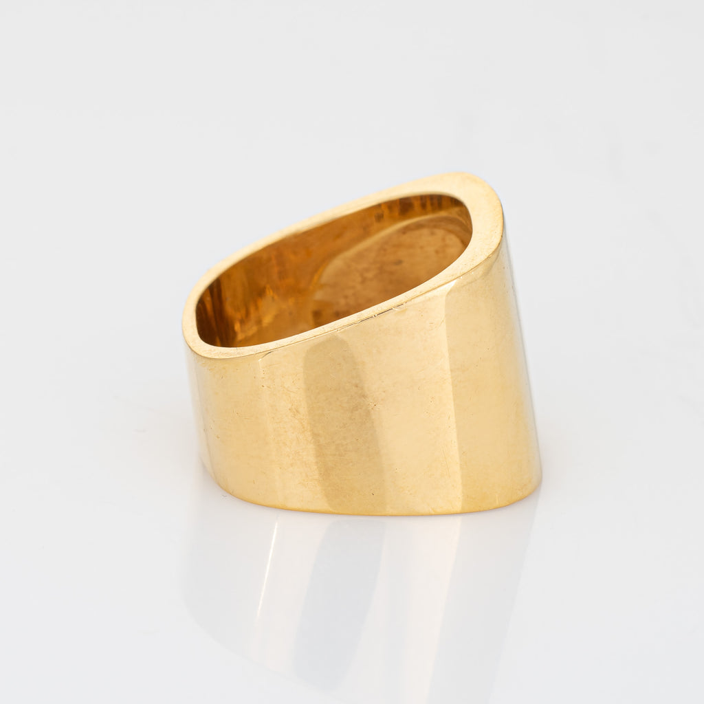 Metal & Hallmark: 18 karat yellow gold. The ring is hallmarked "18k"