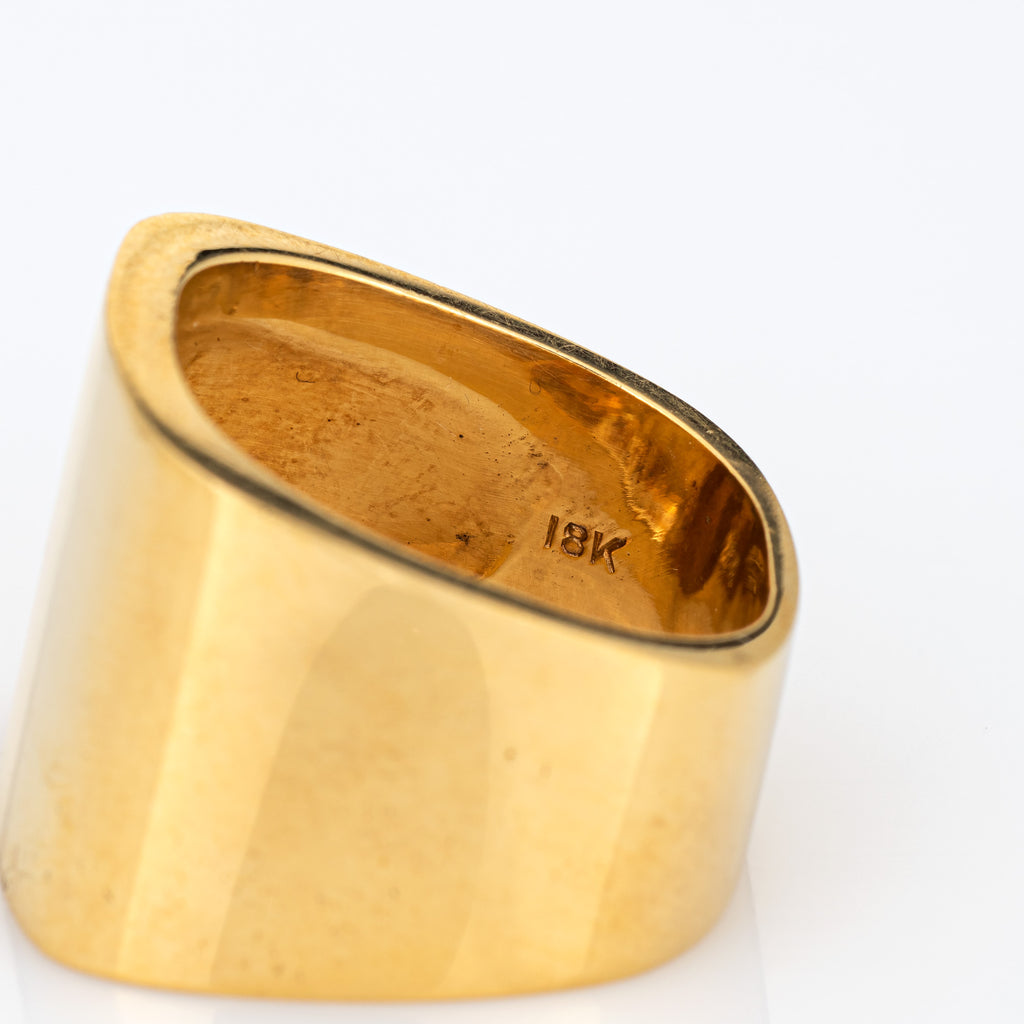 Square Signet Ring Wide Band Cuff 19.5 Grams 18k Gold Sz 8.5 Vintage 80s Jewelry