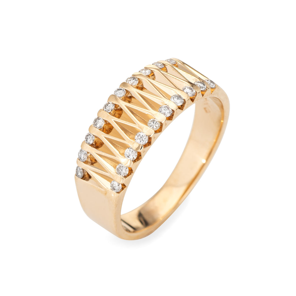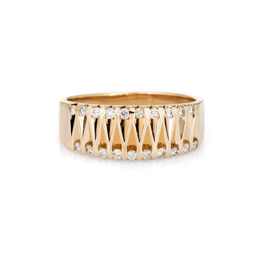 Stylish vintage teardrop diamond band crafted in 14 karat yellow gold.
