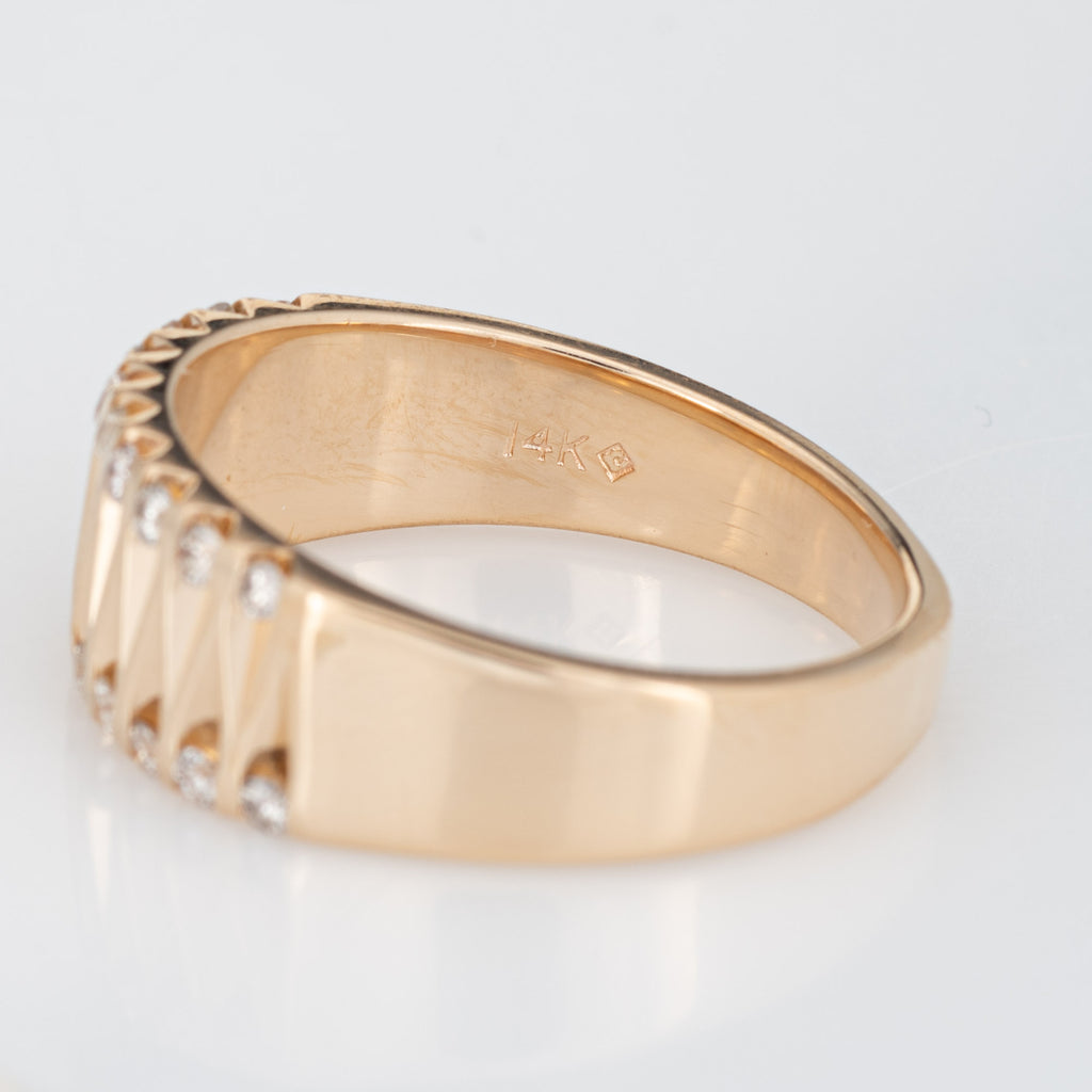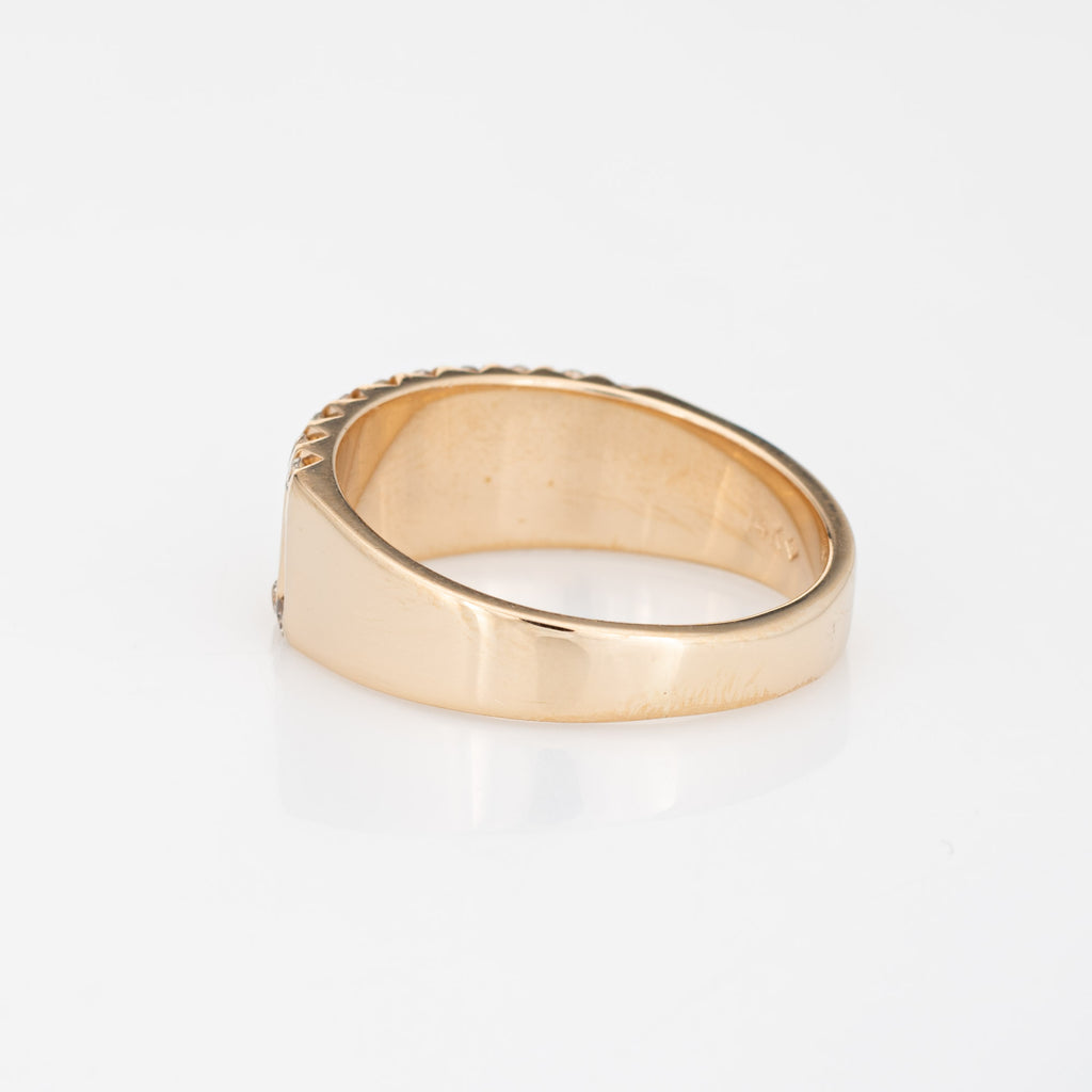 Metal & Hallmark: 14 karat yellow gold. The ring is hallmarked "14k"