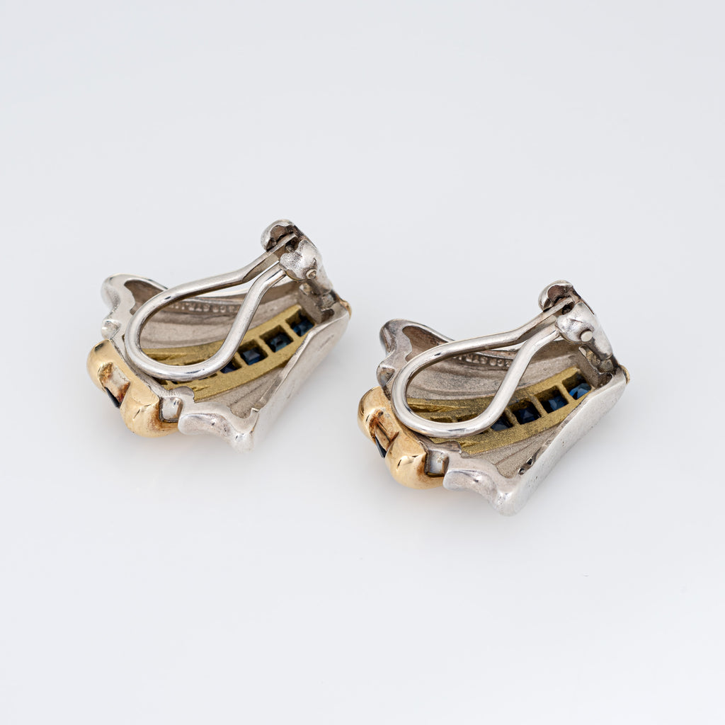 Tiffany & Co Art Deco Style Earrings Sapphire Sterling Silver 14k Gold Clip On