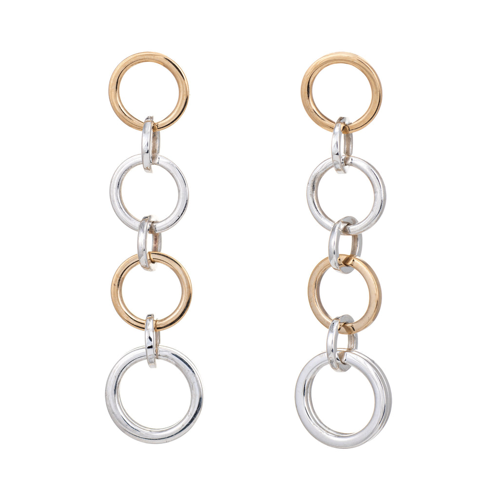 The earrings feature alternating links of sterling silver & 18k gold in various sizes (6.5mm to 11mm). Measuring 1 1/2 inches in length the earrings are great for day or evening wear. The matching bracelet is also available for sale. The earrings are retired and no longer made by Tiffany & Co.