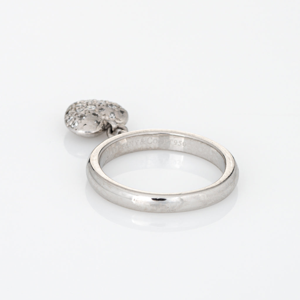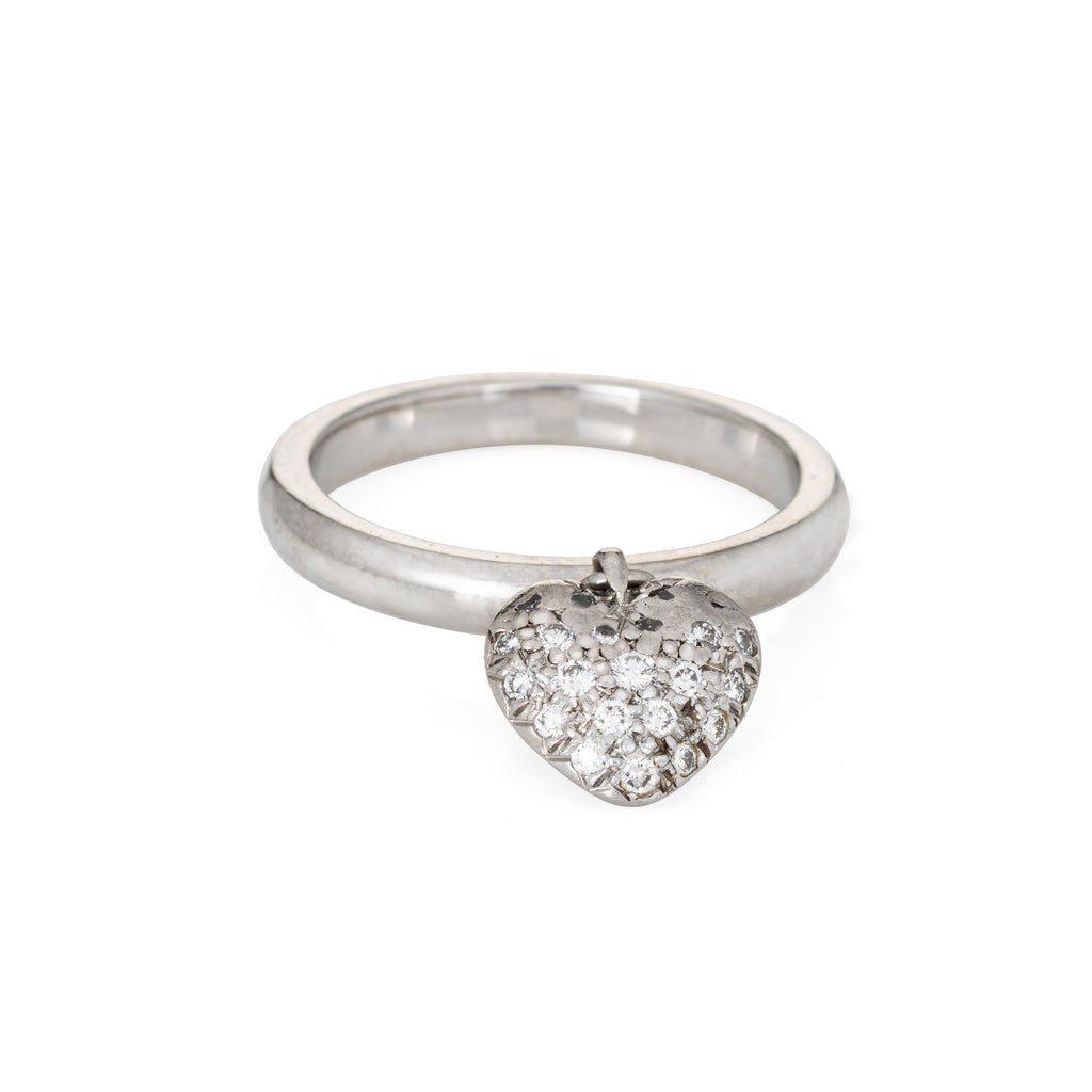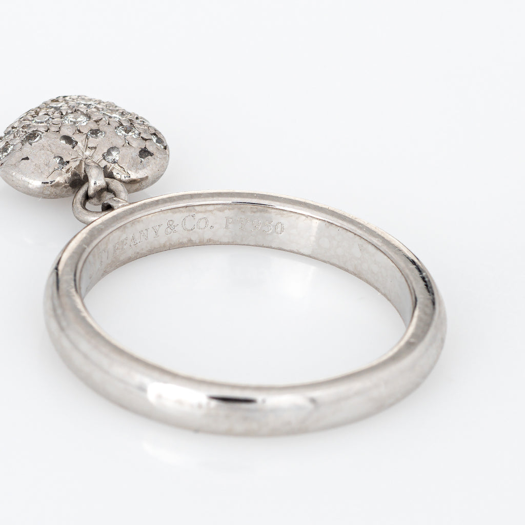 Finely detailed pre owned Tiffany & Co pave diamond heart charm ring crafted in platinum.