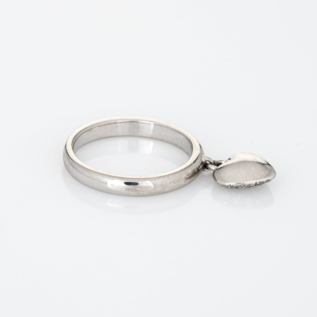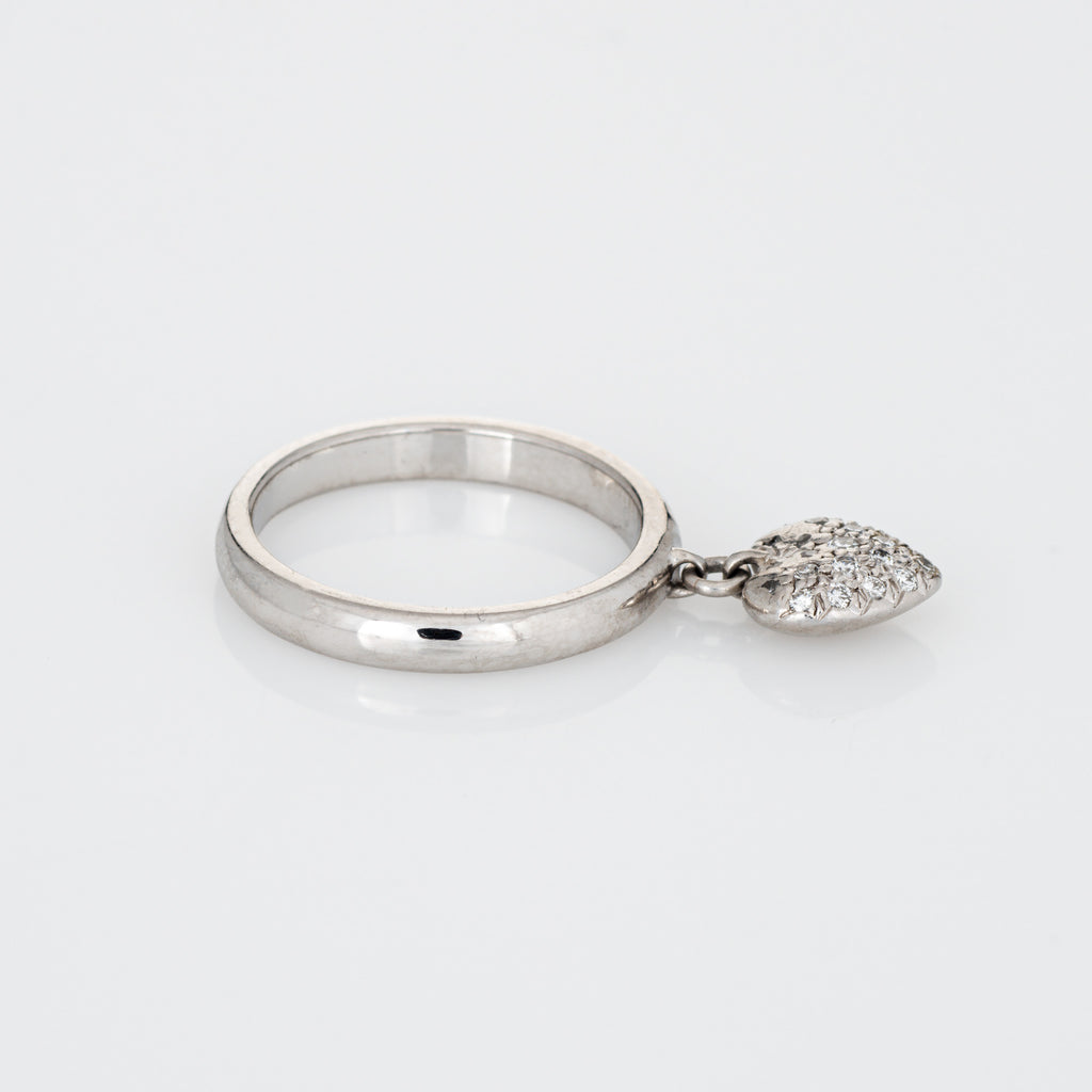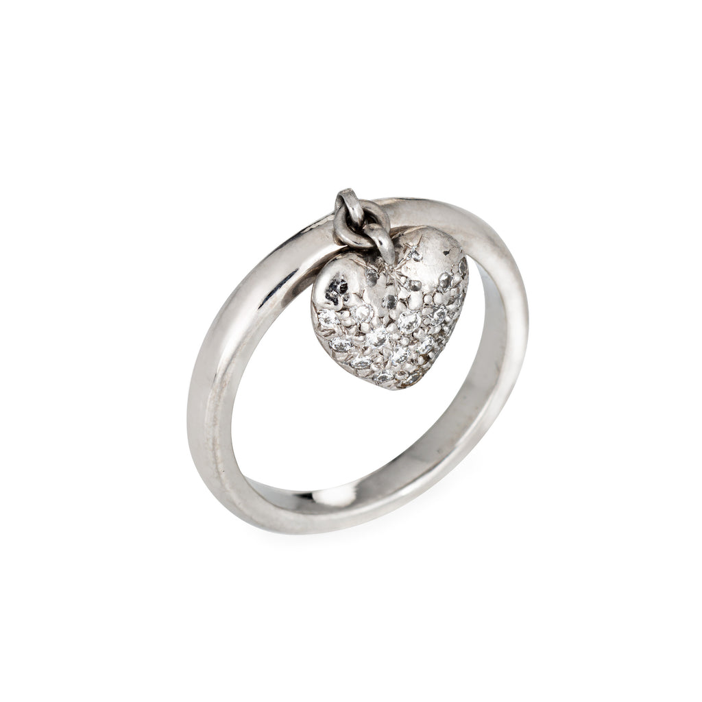 Finely detailed pre owned Tiffany & Co pave diamond heart charm ring crafted in platinum.
