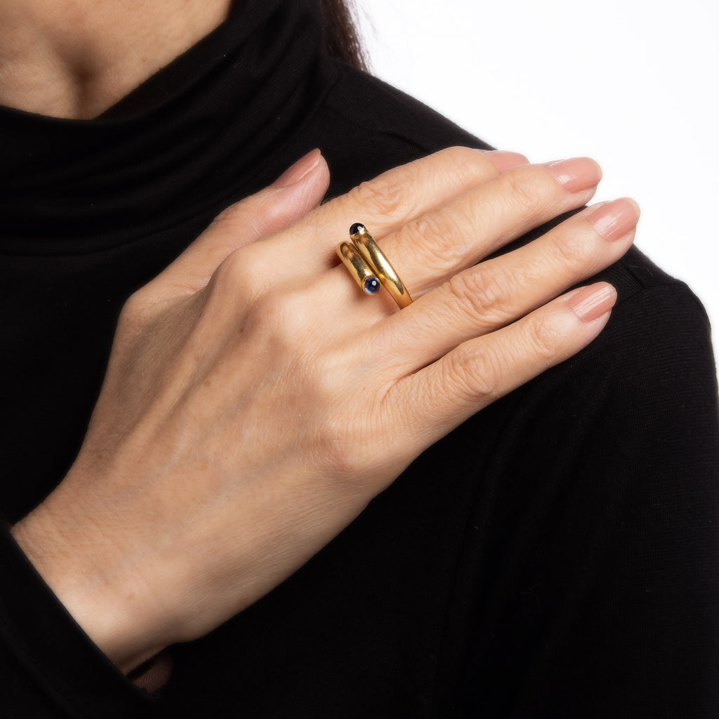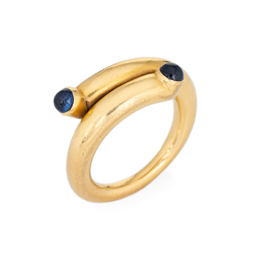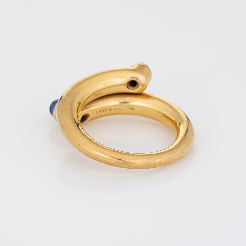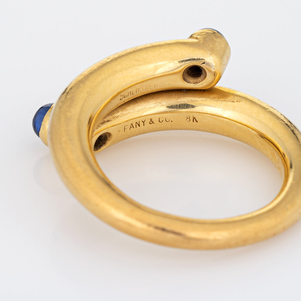 The iconic 'coil' ring designed by Jean Schlumberger for Tiffany & Co is a classic. Two cabochon cut sapphires are set to both ends of the band. The ring is great worn alone or layered with your fine jewelry from any era.