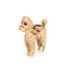 The finely detailed toy poodle features a textured coat and red stone set eyes. Smaller in scale (3/4 inch diameter) the charm is great worn on a charm bracelet or as a pendant.