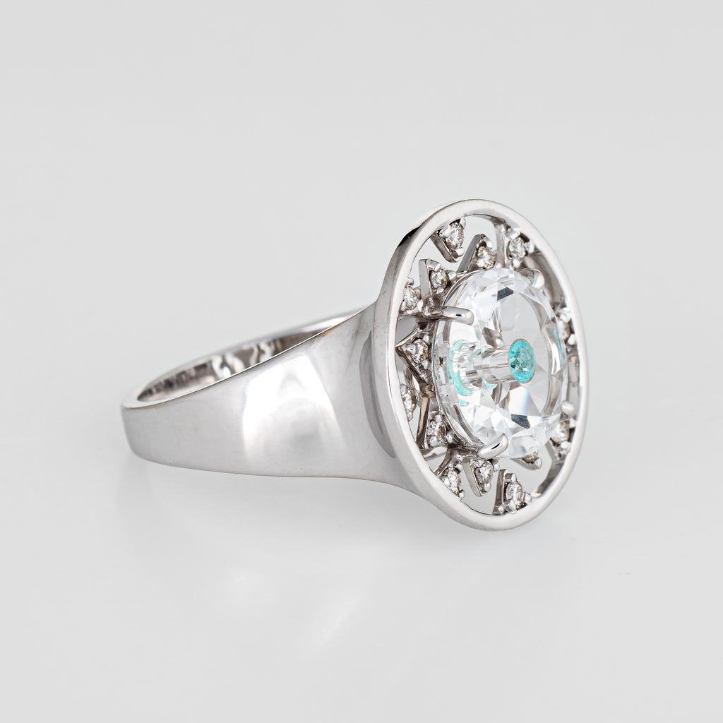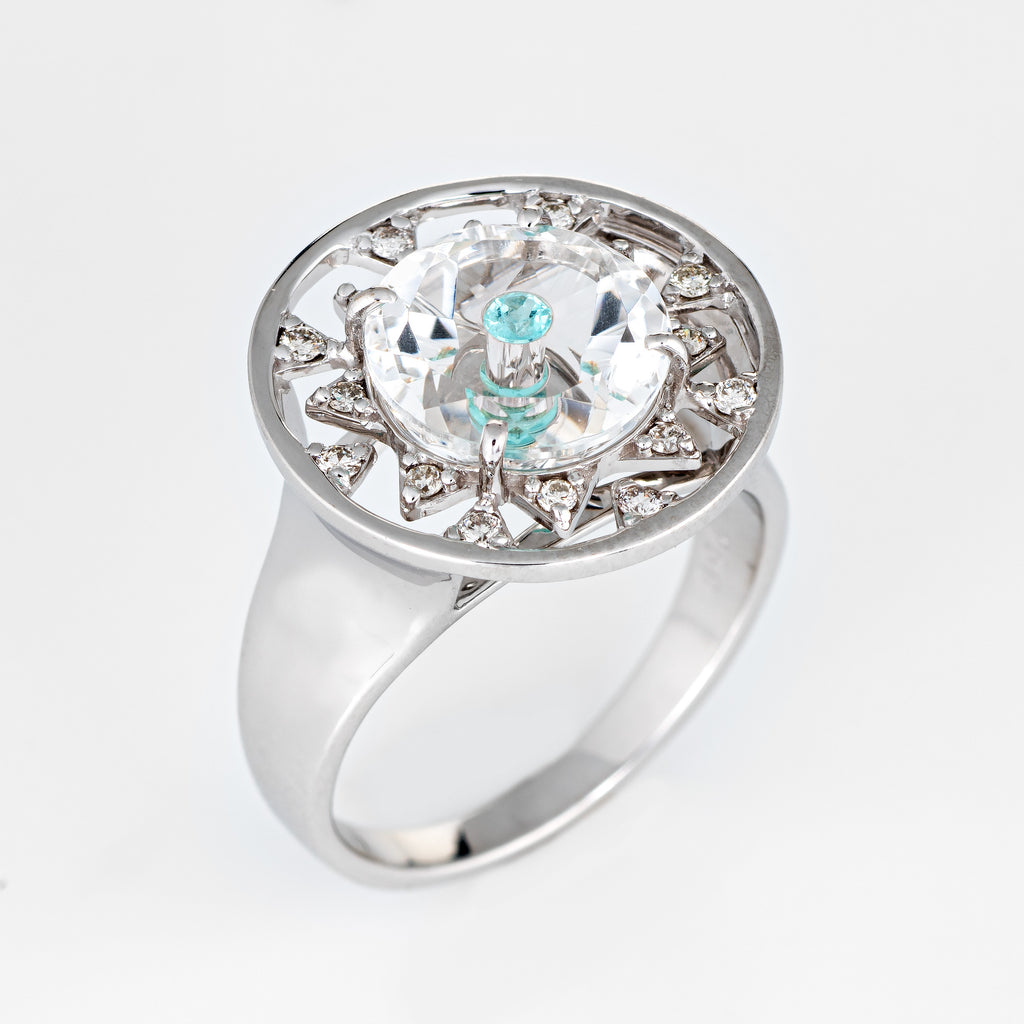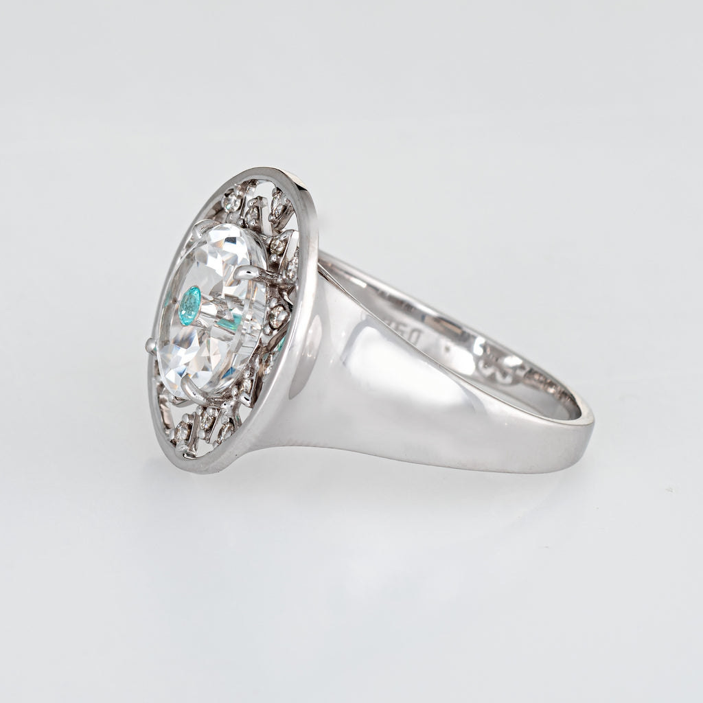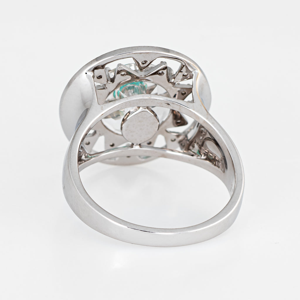 Vianna Brasil Paraiba Tourmaline Diamond Ring Estate 18k White Gold Round 6.75