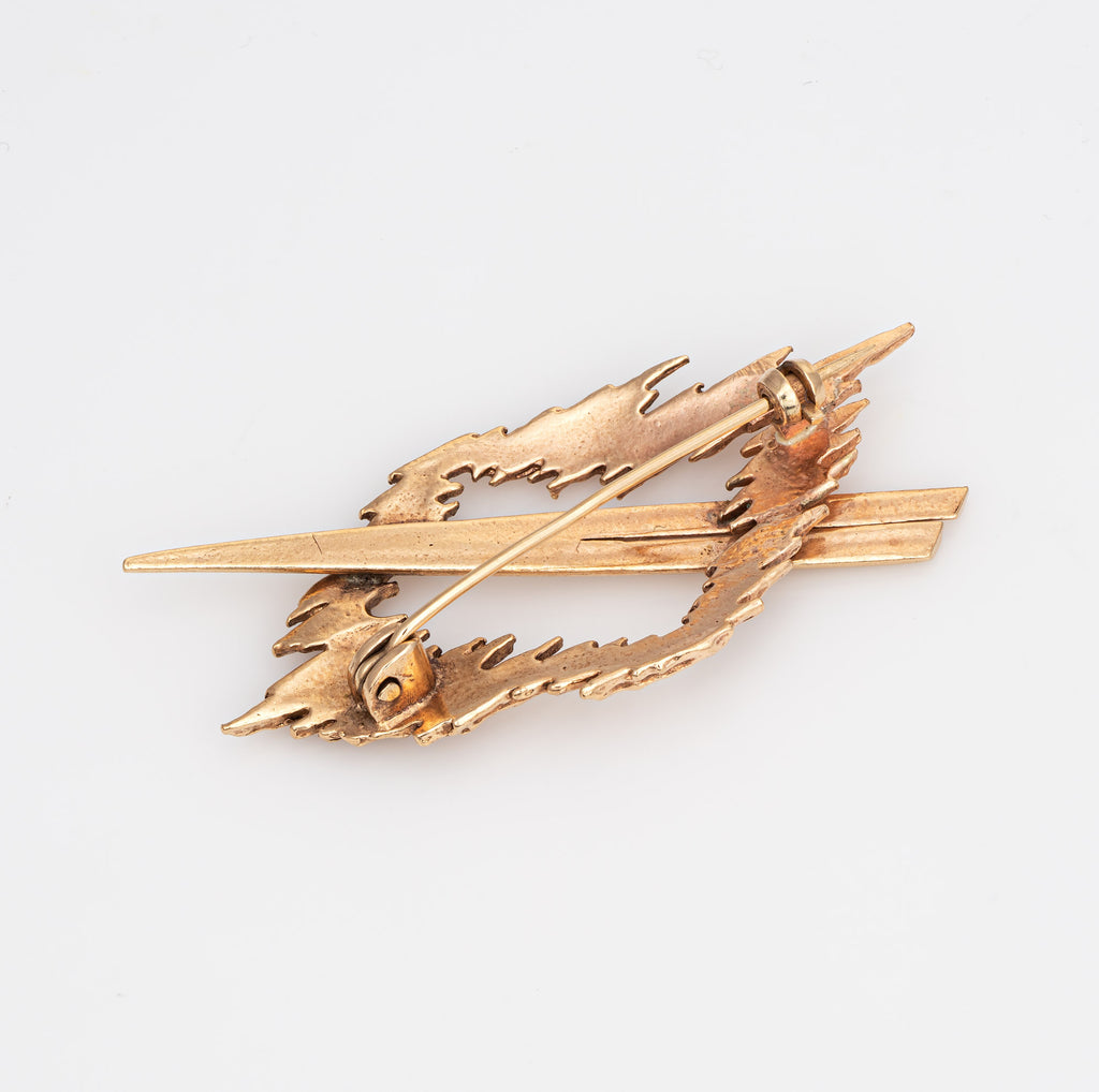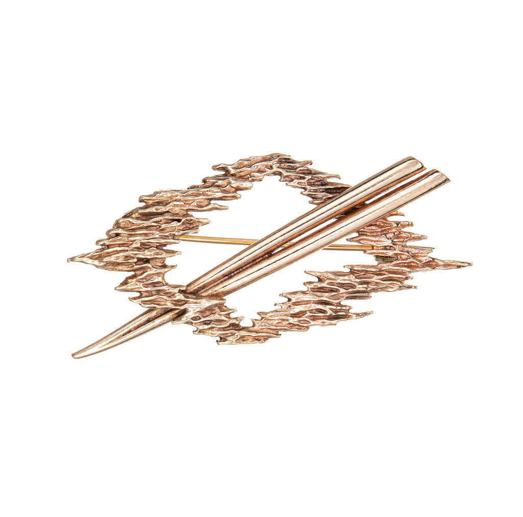 Metal & Hallmark: 14k yellow gold. The brooch is not hallmarked though it has tested positive for 14k gold.