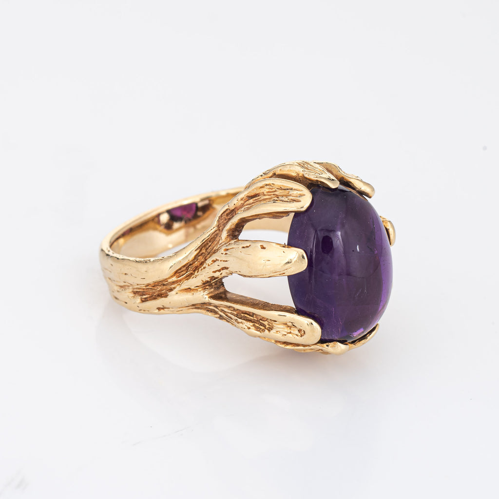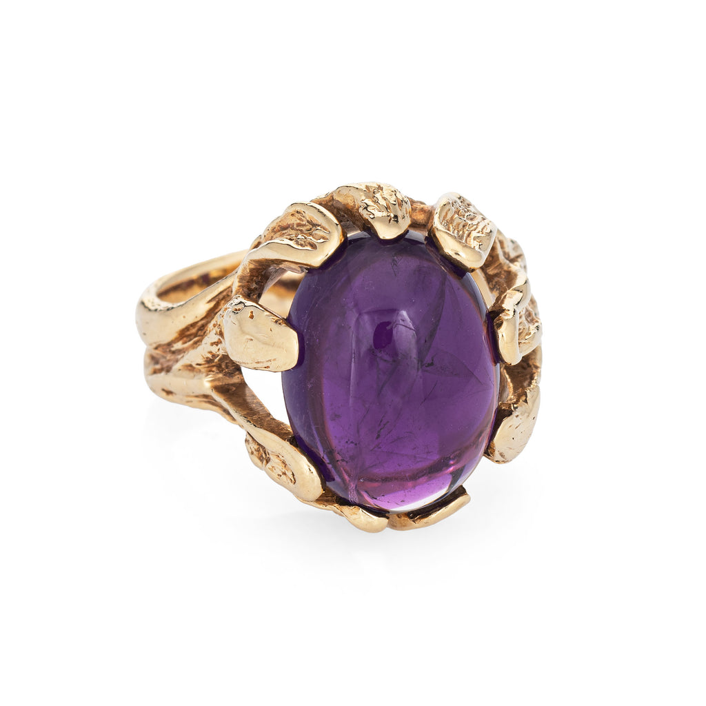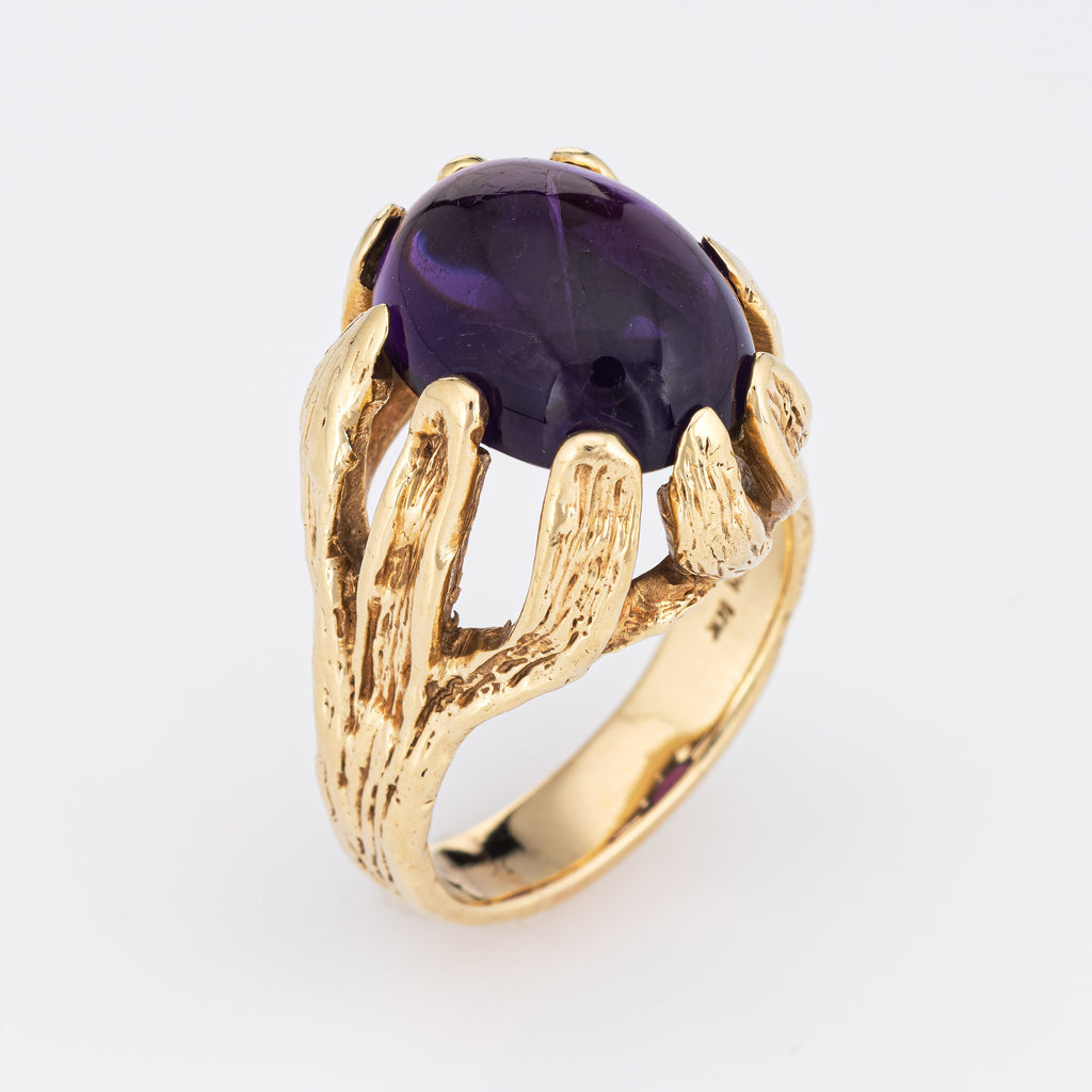 Stylish vintage amethyst cocktail ring (circa 1970s) crafted in 14 karat yellow gold.