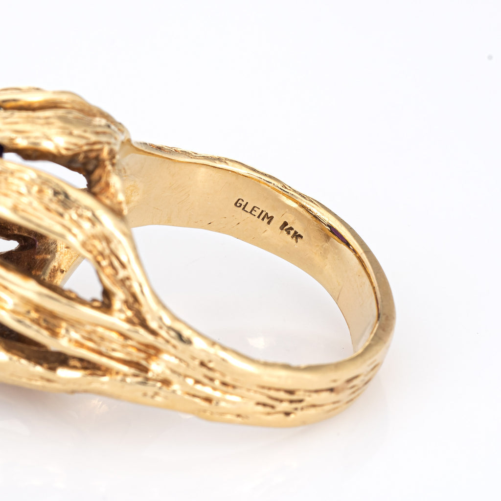Metal & Hallmark: 14 karat yellow gold. The ring is hallmarked "14k"