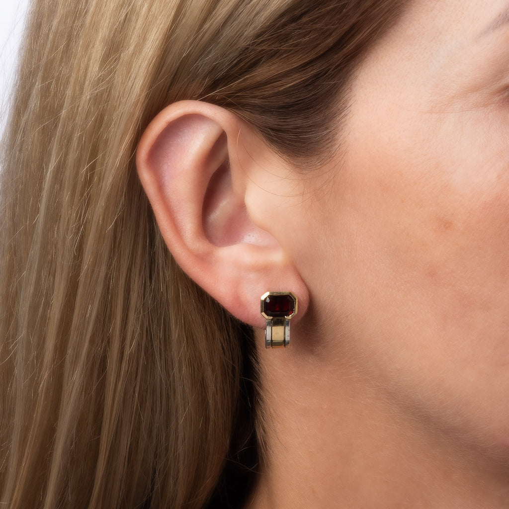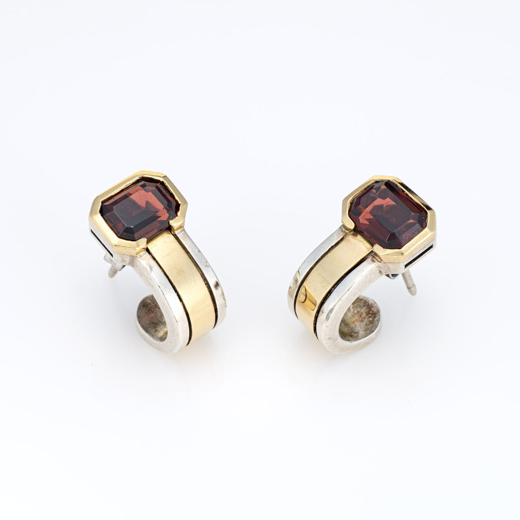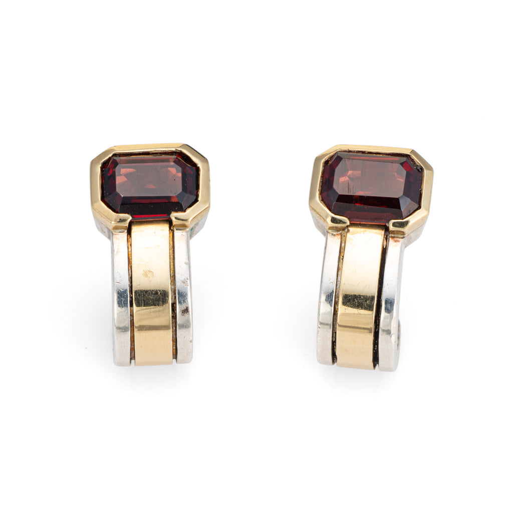 Stylish vintage Cartier garnet earrings crafted in sterling silver and 18 karat yellow gold (circa 1970s).