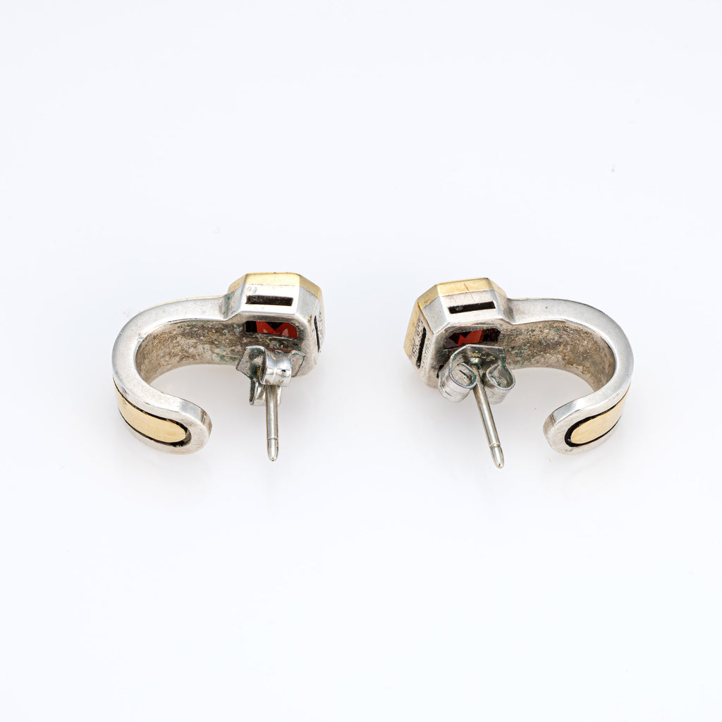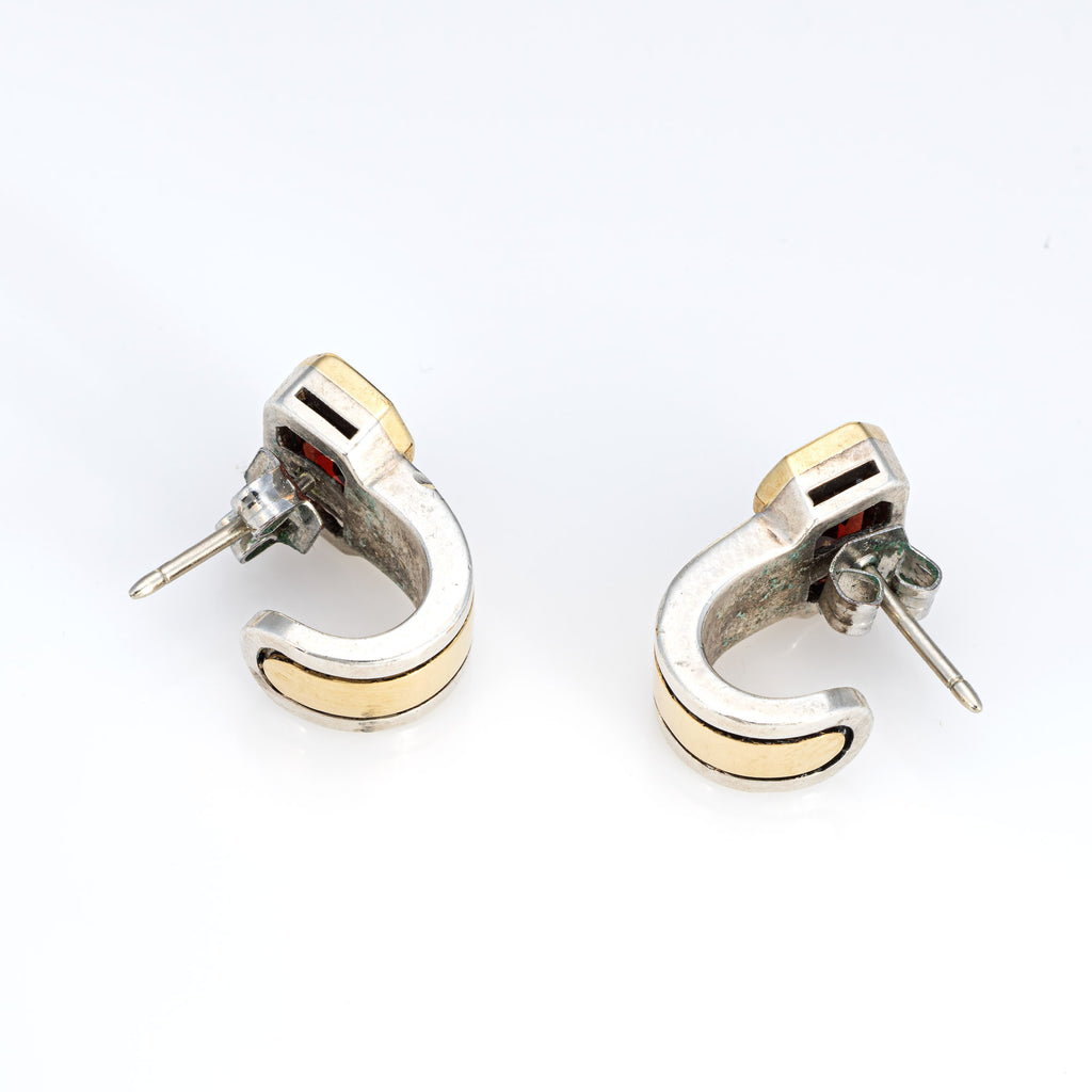 Vintage 70s Cartier Garnet Earrings Sterling Silver 18k Gold Signed Jewelry