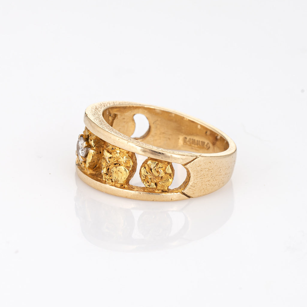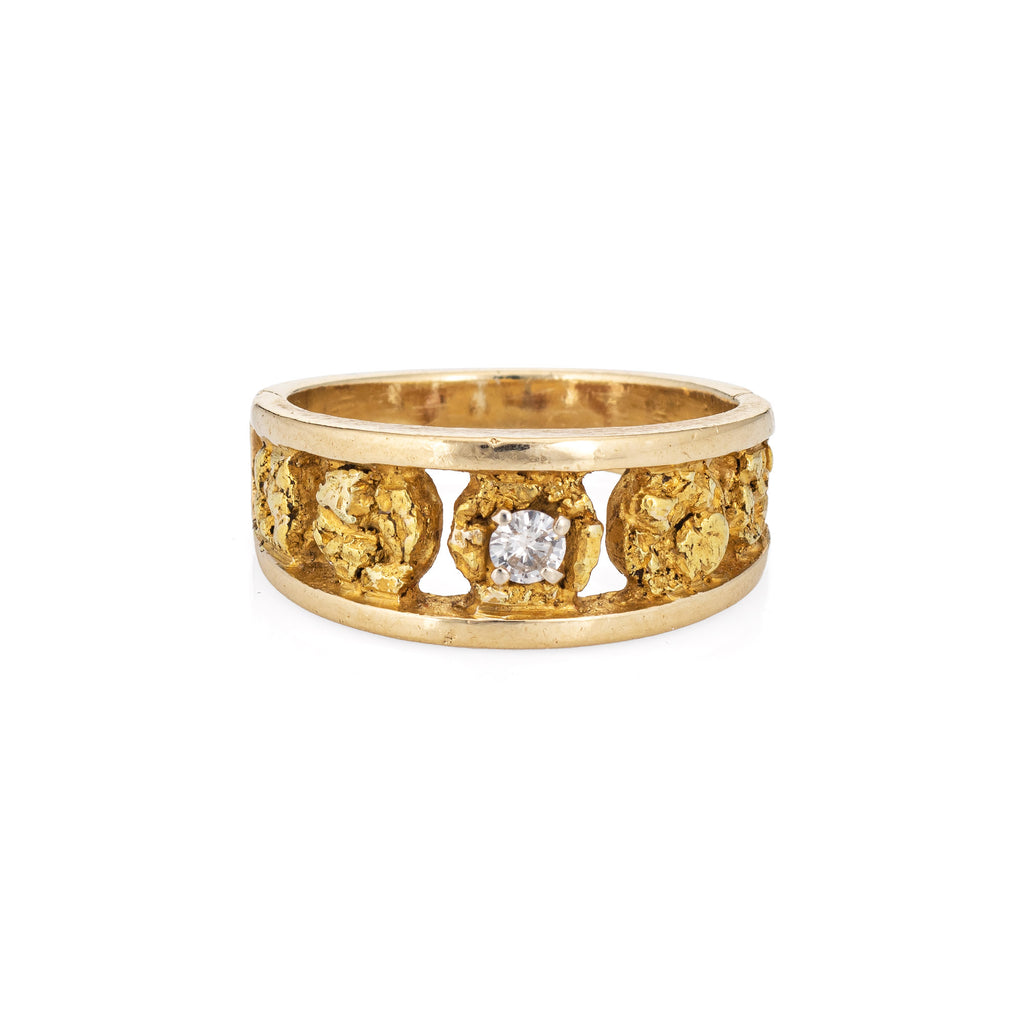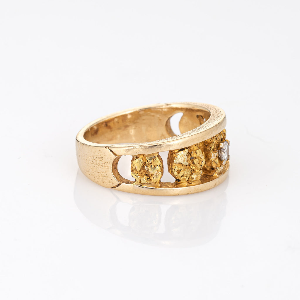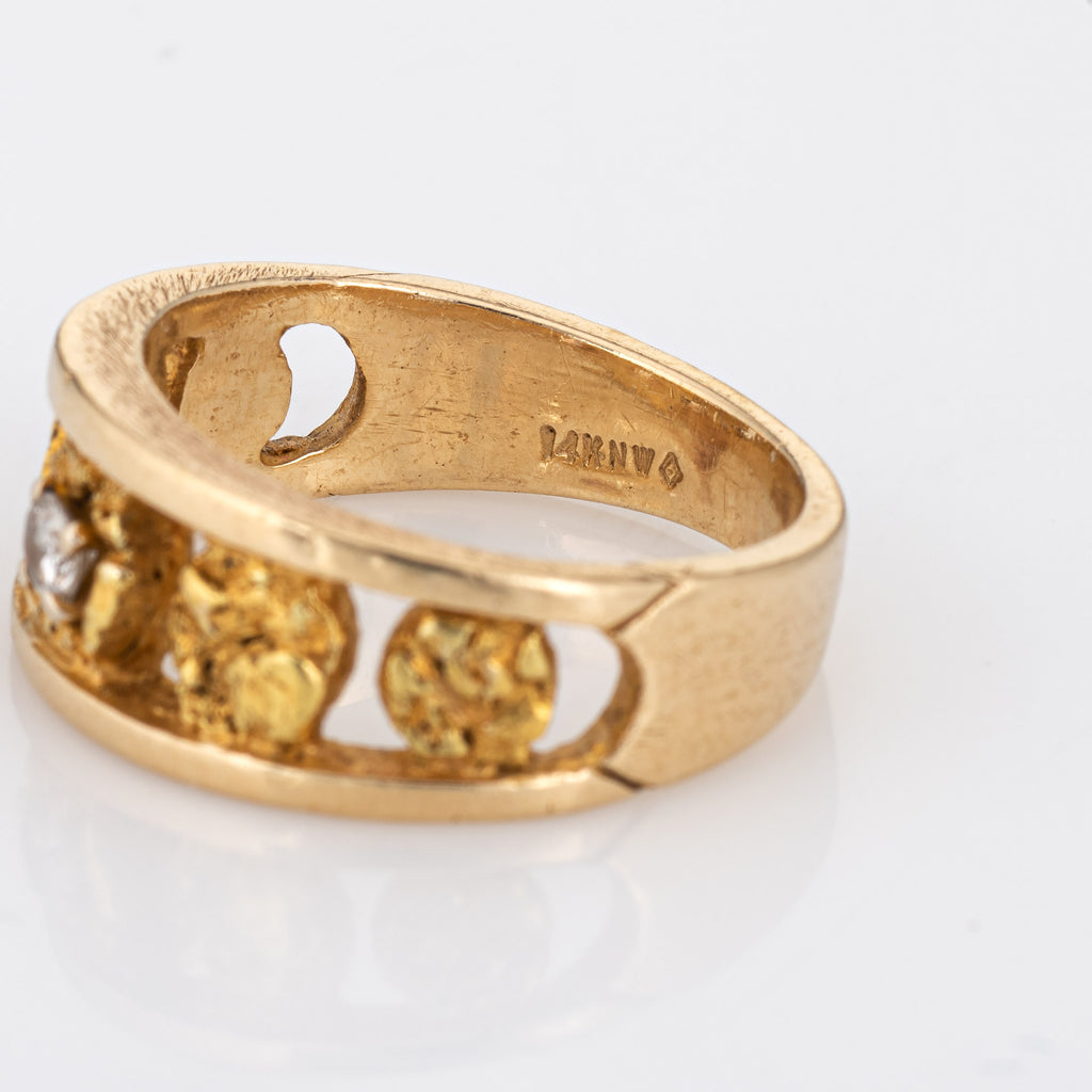 Stylish vintage nugget & diamond ring (circa 1970s) crafted in 14 karat yellow gold (the gold nuggets are 24k gold).