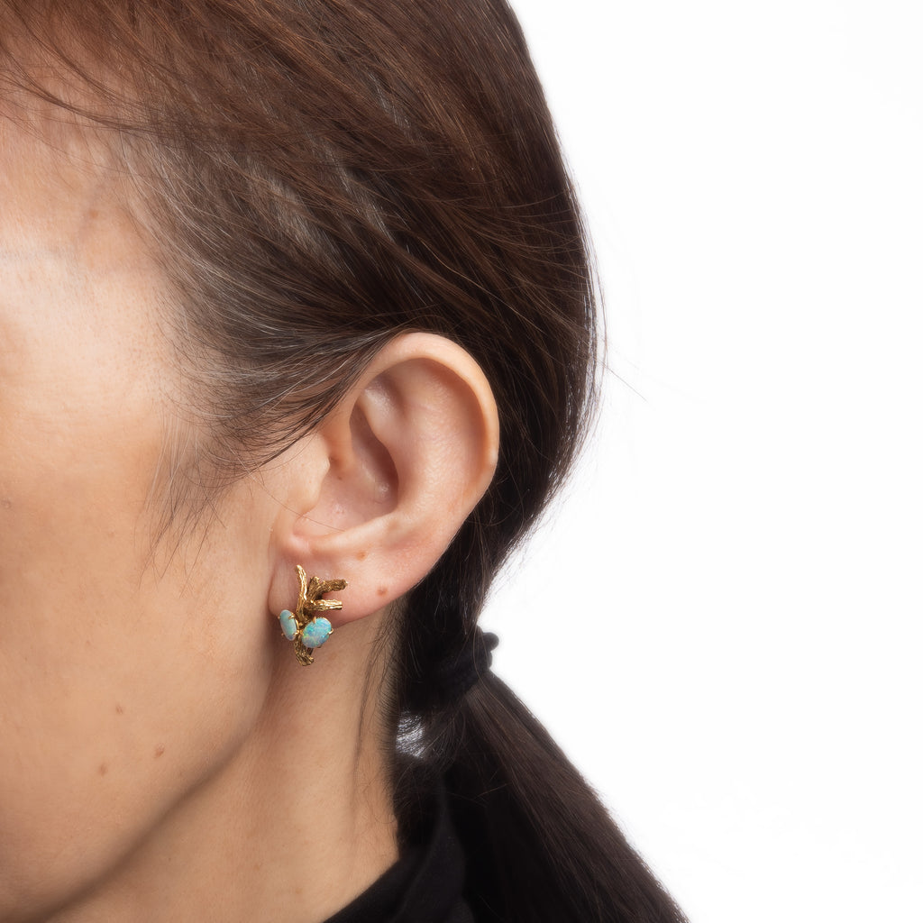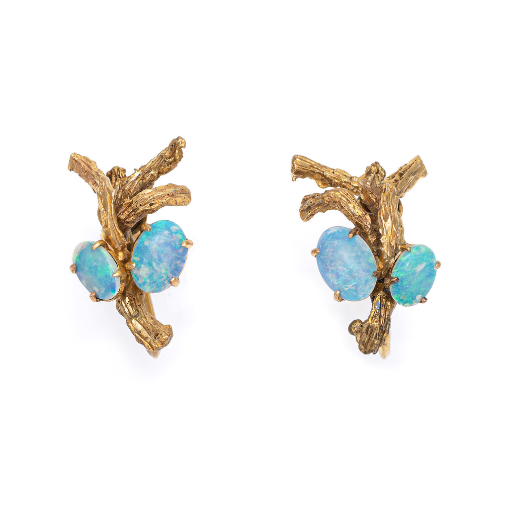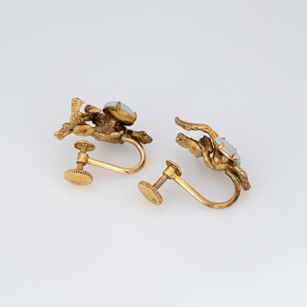 Vintage 70s Opal Branch Earrings 18k Yellow Gold Estate Fine Nature Jewelry