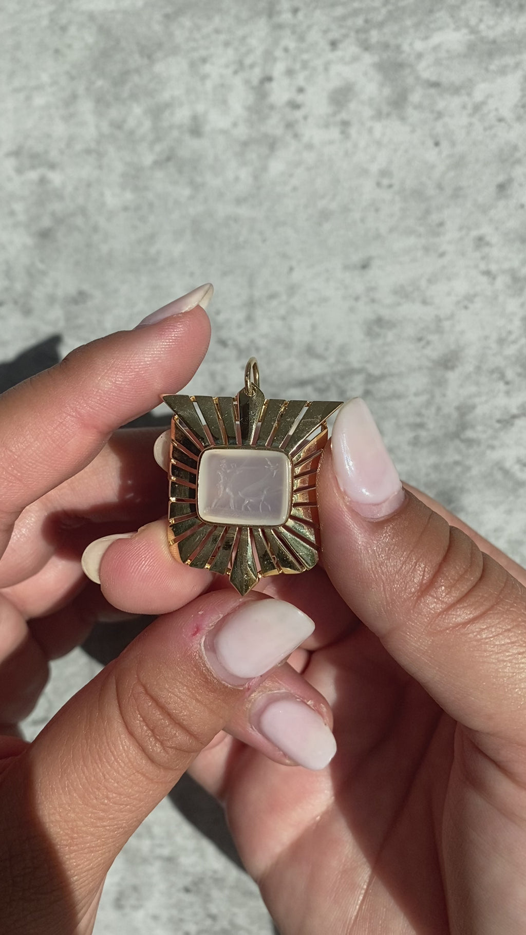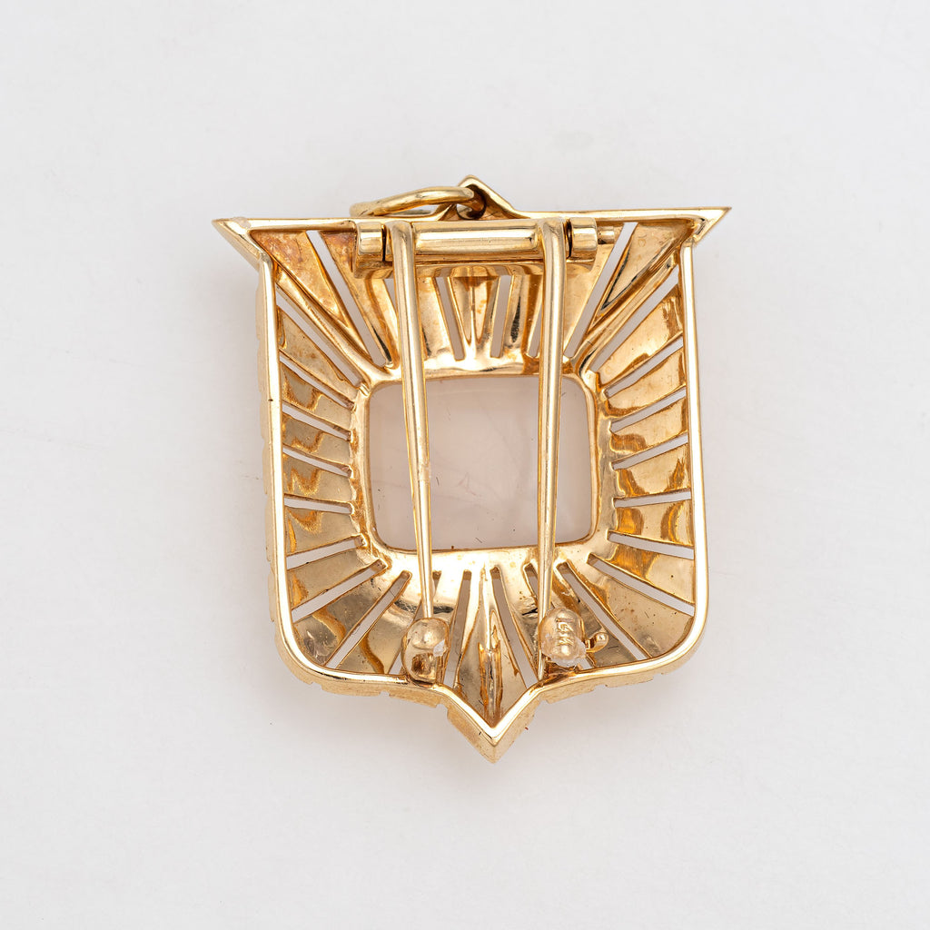 Finely detailed vintage agate intaglio pendant/brooch crafted in 14k yellow gold (circa 1950s to 1960s).