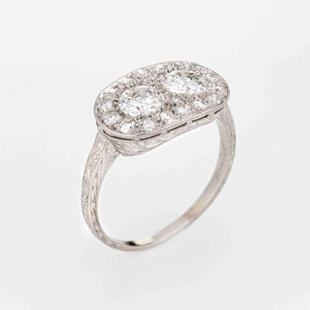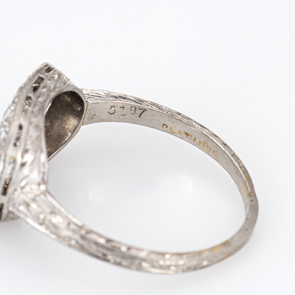 Finely detailed vintage Art Deco era diamond ring (circa 1920s to 1930s) crafted in 900 platinum.
