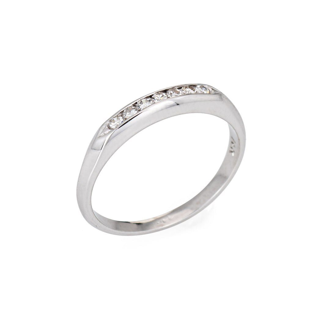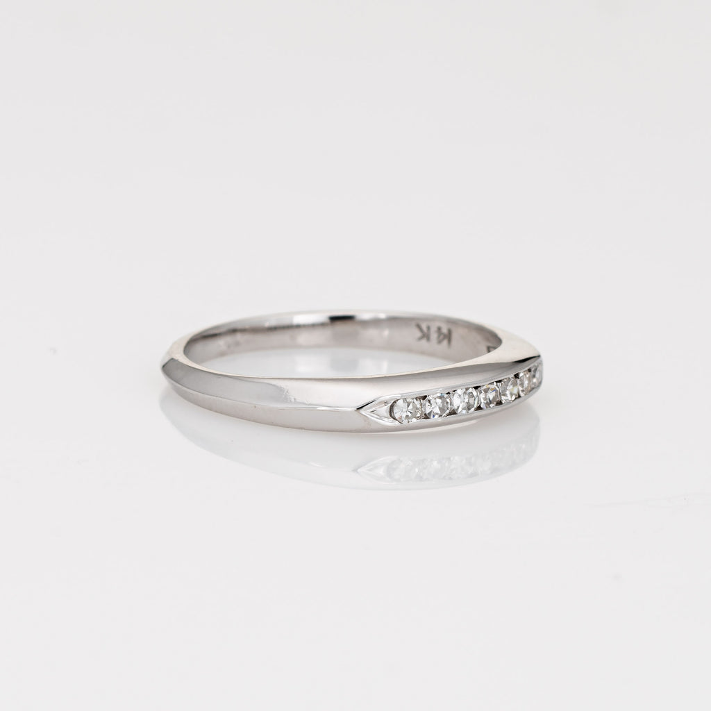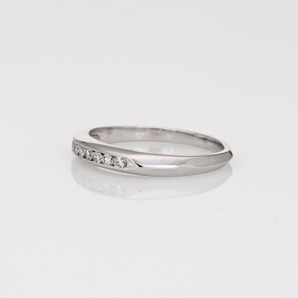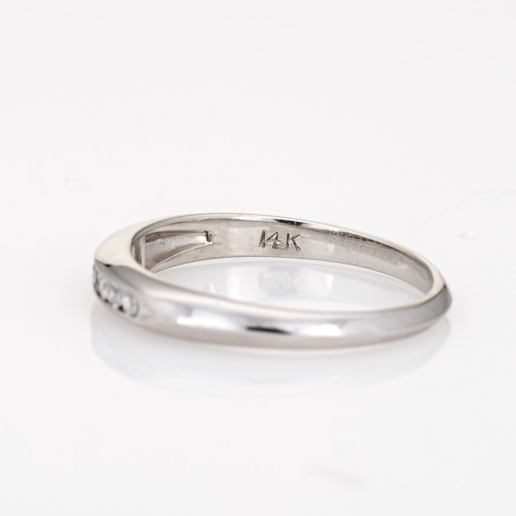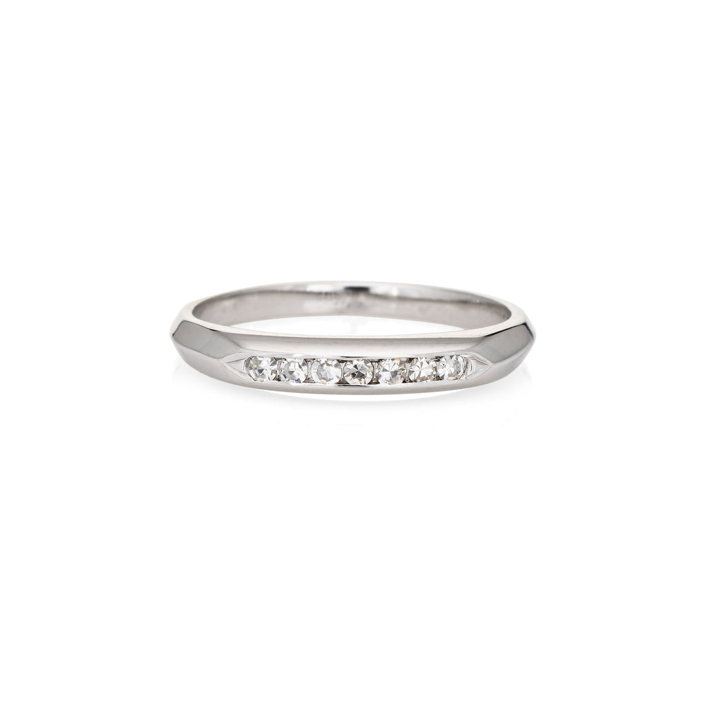 Finely detailed vintage Art Deco diamond wedding band (circa 1920s to 1930s) crafted in 14 karat white gold.