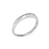 The elegant wedding band features a single row of channel set diamonds. The ring is ideal worn alone or layered with your fine jewelry from any era.
