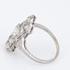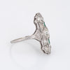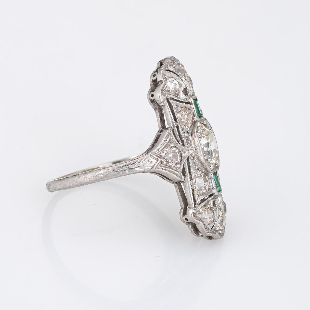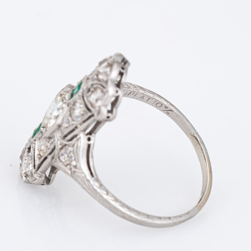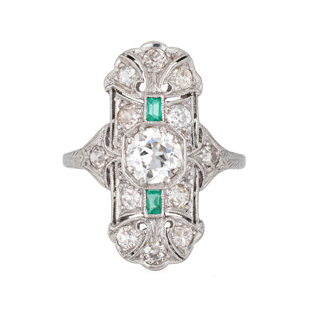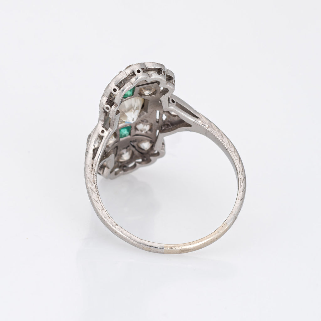Finely detailed vintage Art Deco emerald & diamond ring (circa 1920s to 1930s) crafted in platinum.
