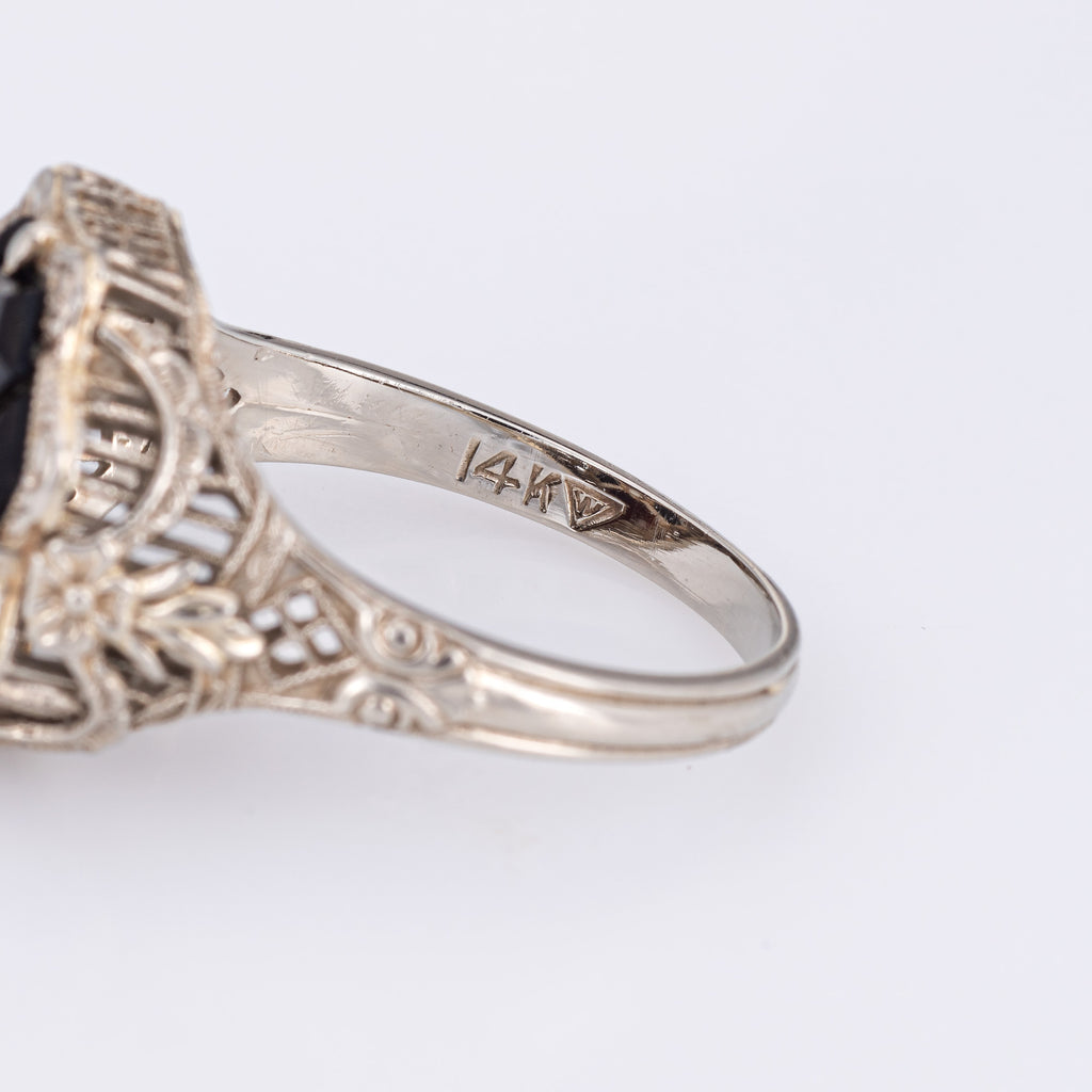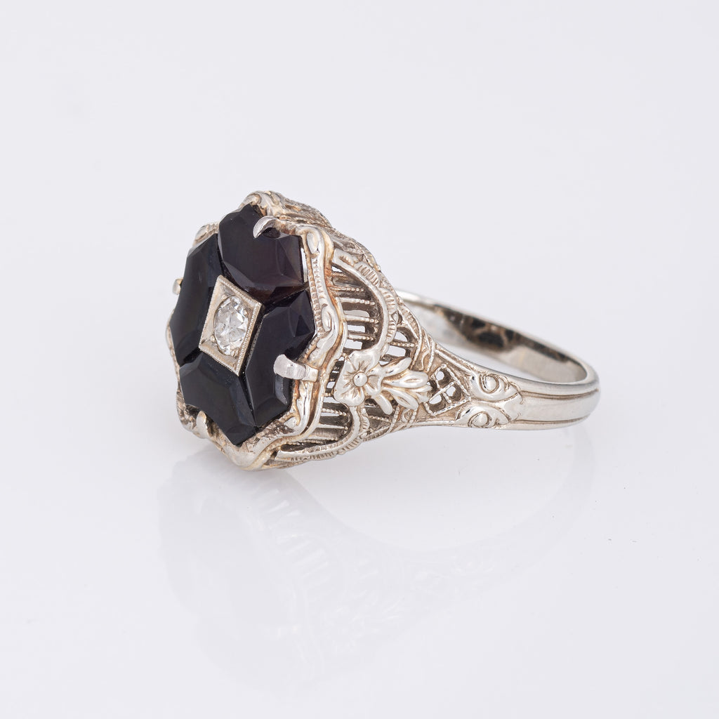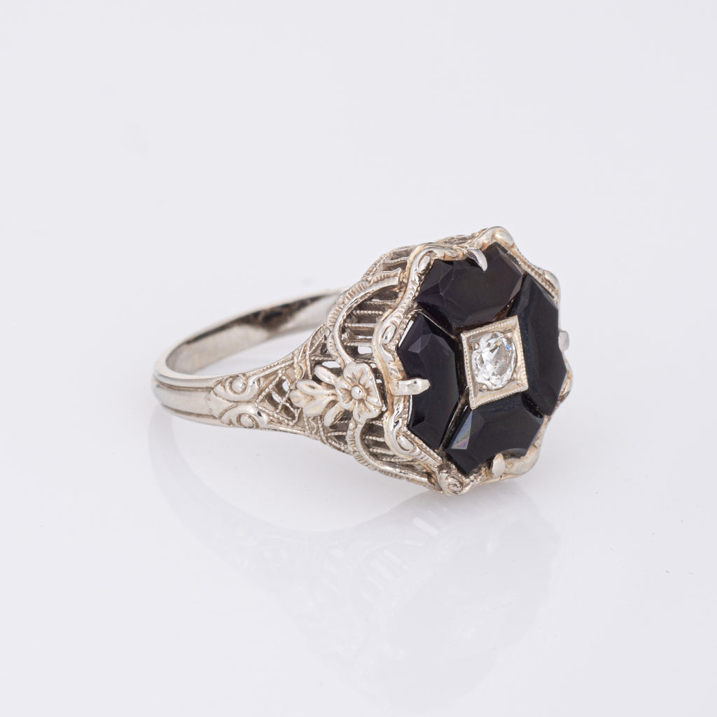 Vintage Art Deco Onyx Diamond Ring 14k White Gold Filigree Estate Jewelry Sz 6