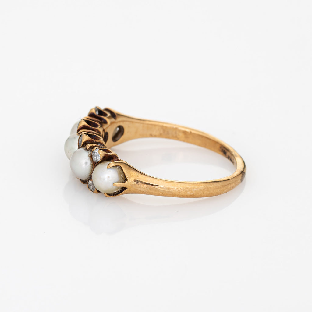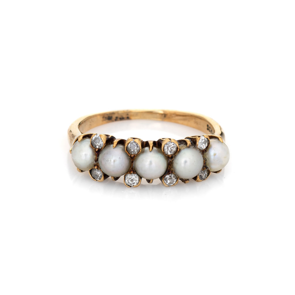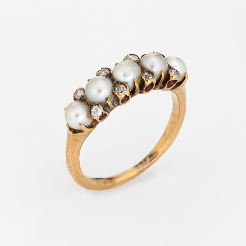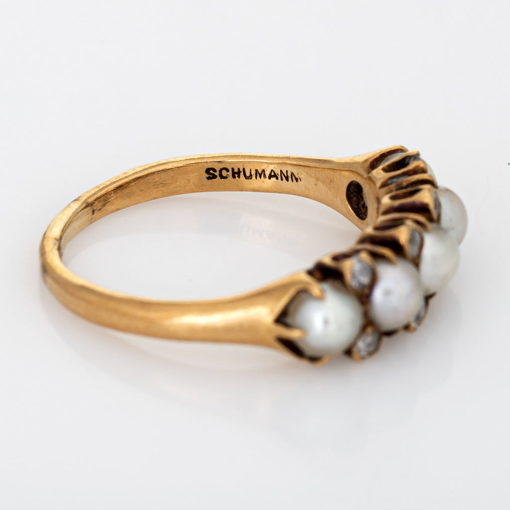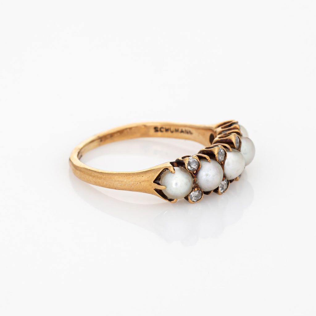 Vintage Art Deco Pearl Diamond Ring 14k Yellow Gold Schumann Sons Band Sz 5.75