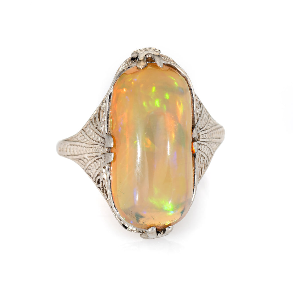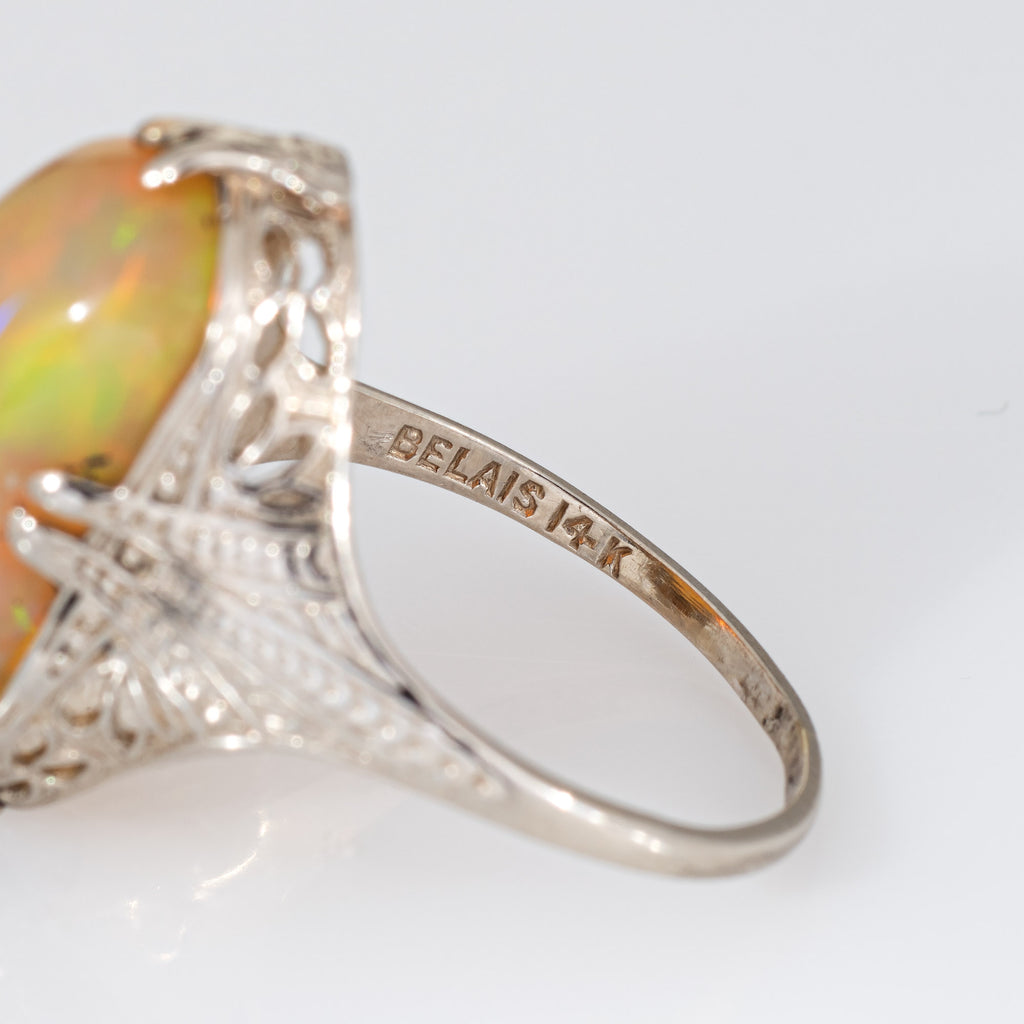 Vintage Belais Art Deco Opal Ring 14k White Gold Sz 5 Filigree Fine Jewelry