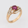 Stones: Oval faceted ruby is estimated at 0.90 carats. 30 round brilliant cut diamonds total an estimated 0.30 carats (estimated at I-J color and SI2-I2 clarity). The ruby is in good condition with light surface abrasions visible under a 10x loupe.