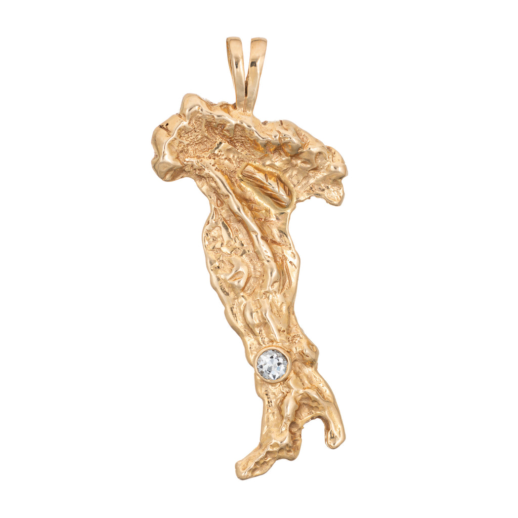 Designed as the country of Italy the boot shaped pendant is set with a diamond and nugget style texturing. The piece is great worn alone as a statement piece or layered with your fine jewelry from any era.