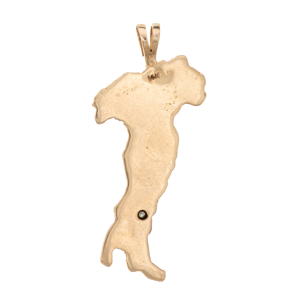 Finely detailed pendant depicting the country of Italy crafted in 14k yellow gold (circa 1960s to 1970s).