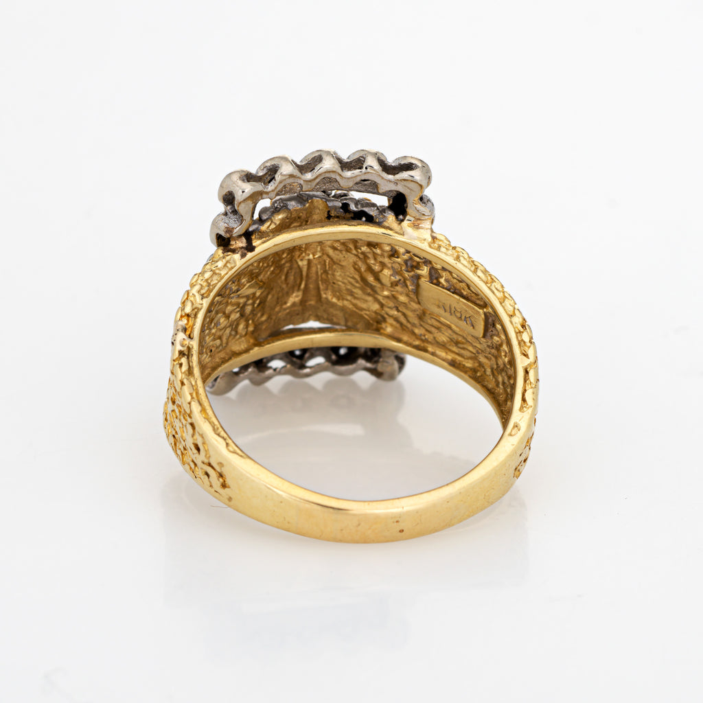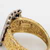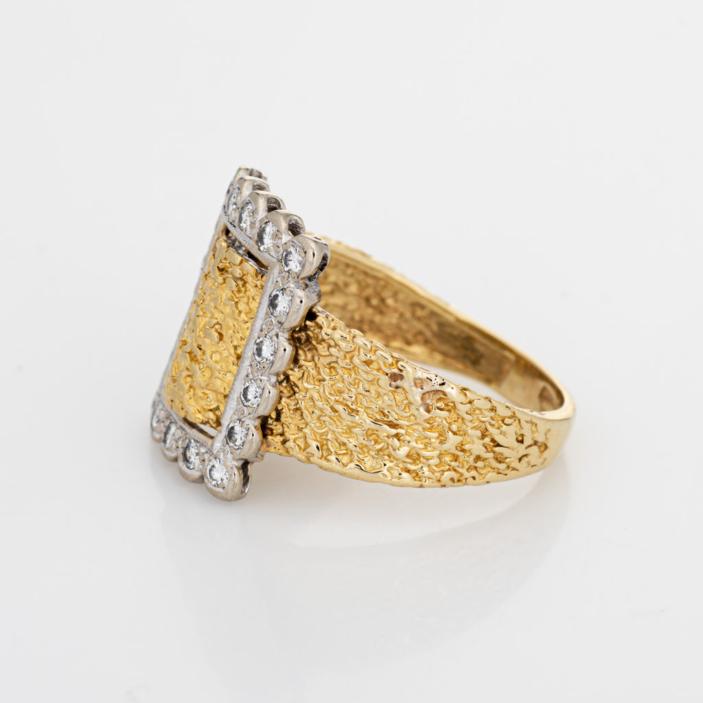 Stylish vintage diamond buckle ring (circa 1960s to 1970s) crafted in 14 karat yellow gold.