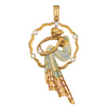Finely detailed vintage diamond & enamel sitting woman pendant crafted in 18k yellow gold (circa 1970s).